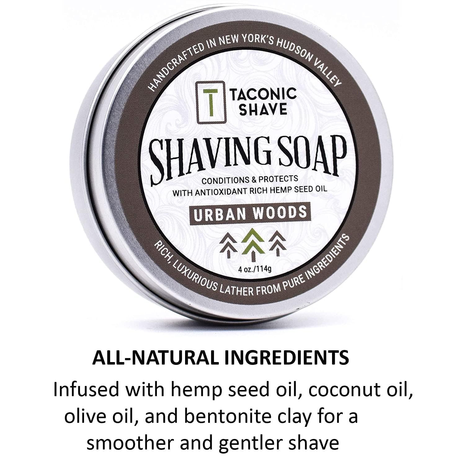 Taconic Shave Barbershop Quality Shaving Soap with Anti-Oxidant Rich Natural Oils – Large 4 Ounce (3 Inch Puck) - Excellent forr All Skin Types (Urban Woods)