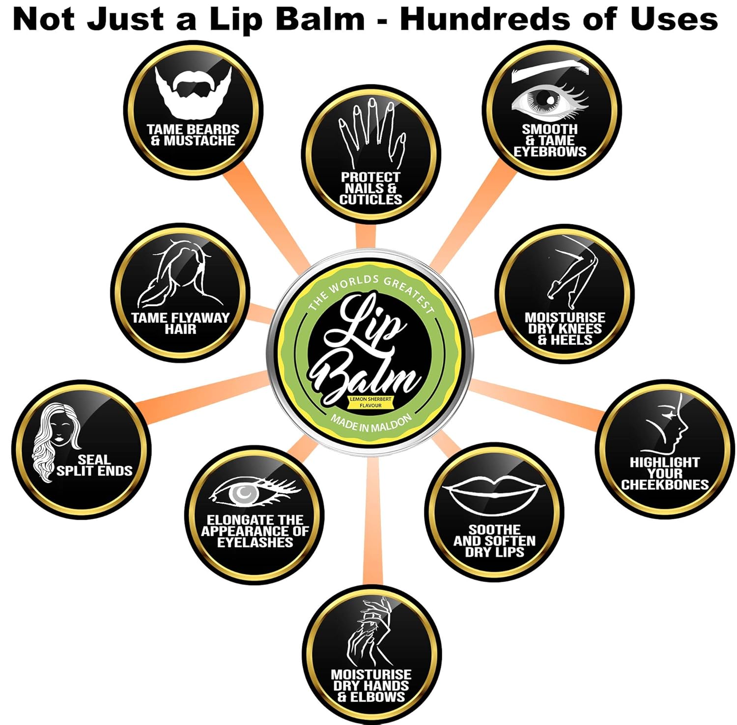 Lip Balm - Lemon Sherbet Flavoured Natural & Organic Lip Moisturizer Balm | Made with Shea Butter Beeswax Jojoba oil & Hemp Seed Oil, The Beard & the Wonderful Lip Balms for Dry & Cracked Lips | 15mL