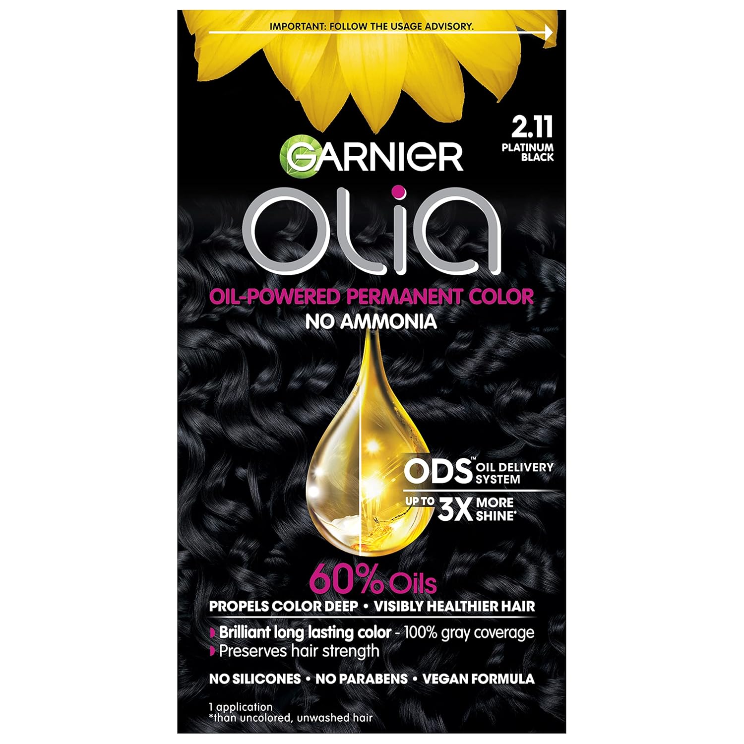 Garnier Hair Color Olia Ammonia-Free Brilliant Color Oil-Rich Permanent Hair Dye, 2.11 Platinum Black, 1 Count (Packaging May Vary)
