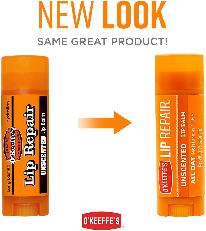 O'Keeffe's Unscented Lip Repair Lip Balm for Dry, Cracked Lips, Stick, (Pack of 11)