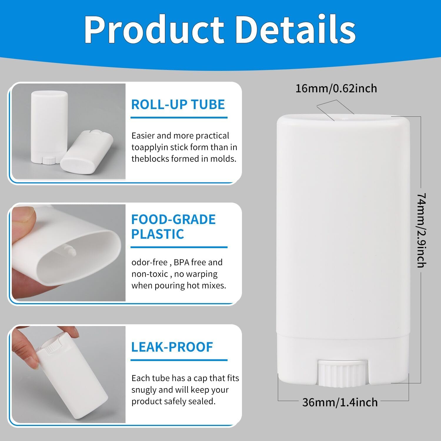 Empty Oval Deodorant Lip Lipstick Balm Tubes Containers Plastic (20-Pack) (15ml, white)