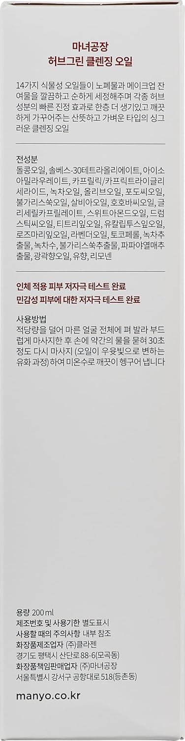 ma:nyo Herb Green Cleansing Oil | Gentle Makeup Remover with Natural Herbal Extracts, Artemisa, Tea Tree | Deep Cleansing & Hydrating | Suitable for All Skin Types | Korean Skincare 6.7 fl oz (200ml)
