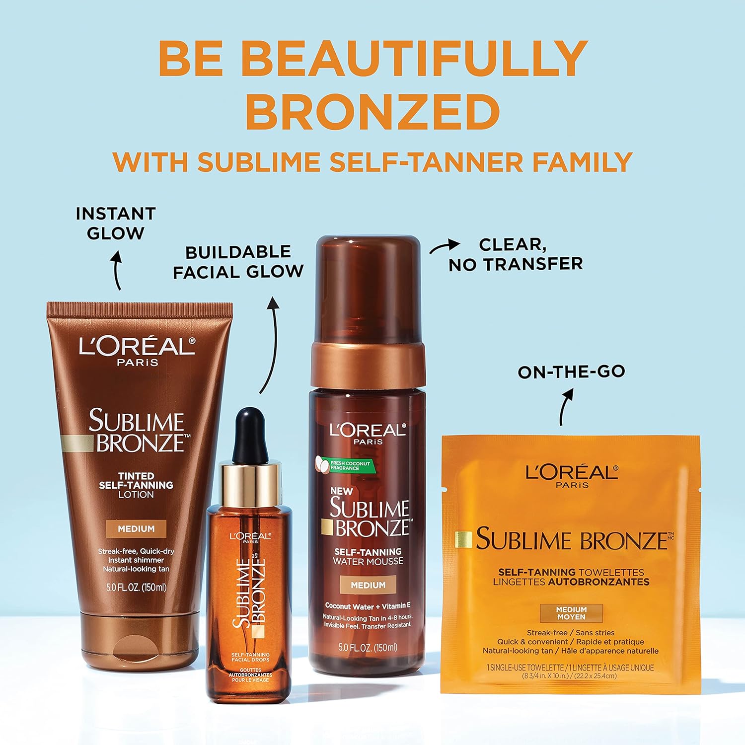 L'Oreal Paris Sublime Bronze Self Tanning Towelettes, Streak-Free, Natural Looking Tan, 6 ct (Pack of 2)