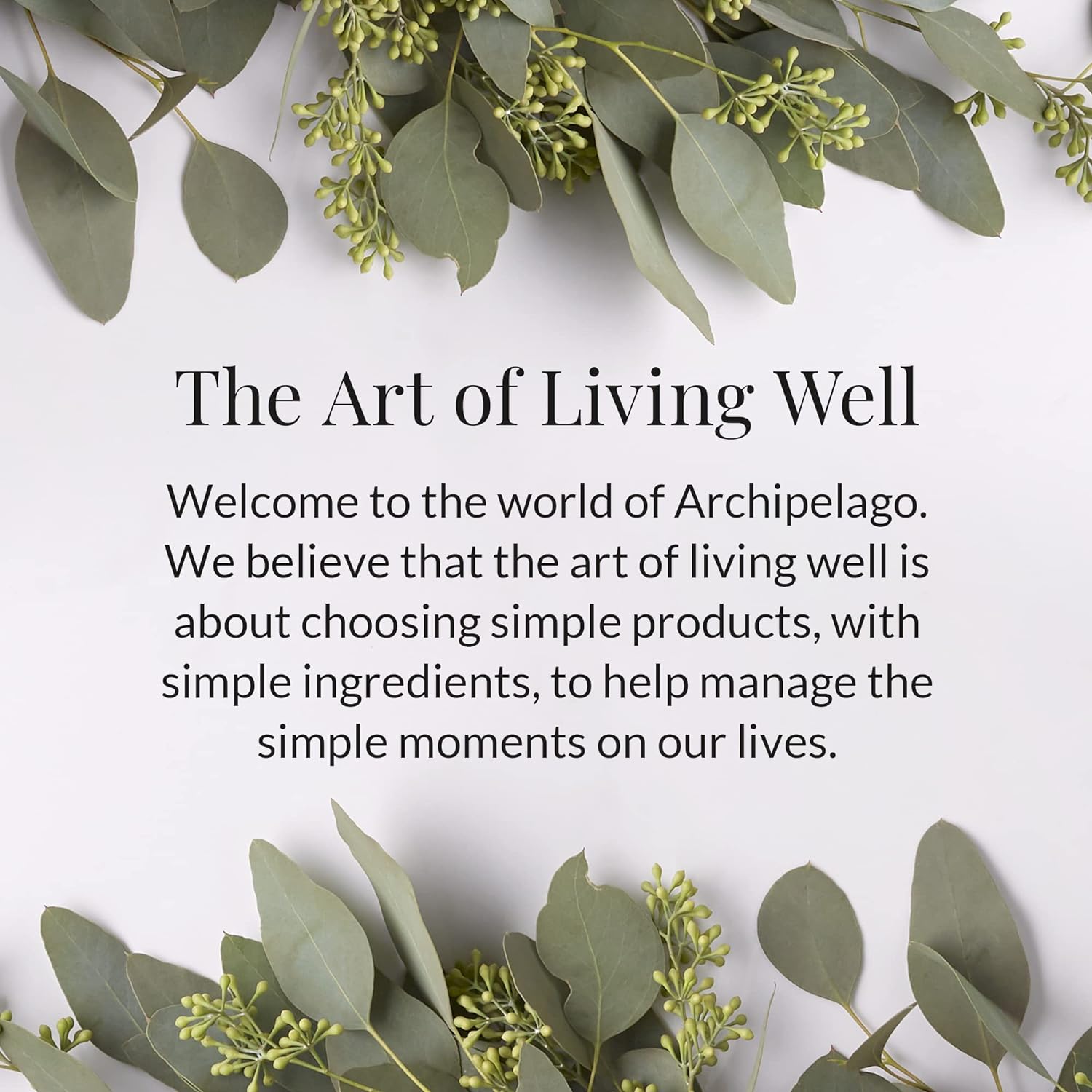 - The Art of Living Well: At Archipelago Botanicals, we believe that the art of living well is about choosing simple products, with simple ingredients, to help manage the simple moments in our lives; Made in the USA with domestically and globally sourced materials