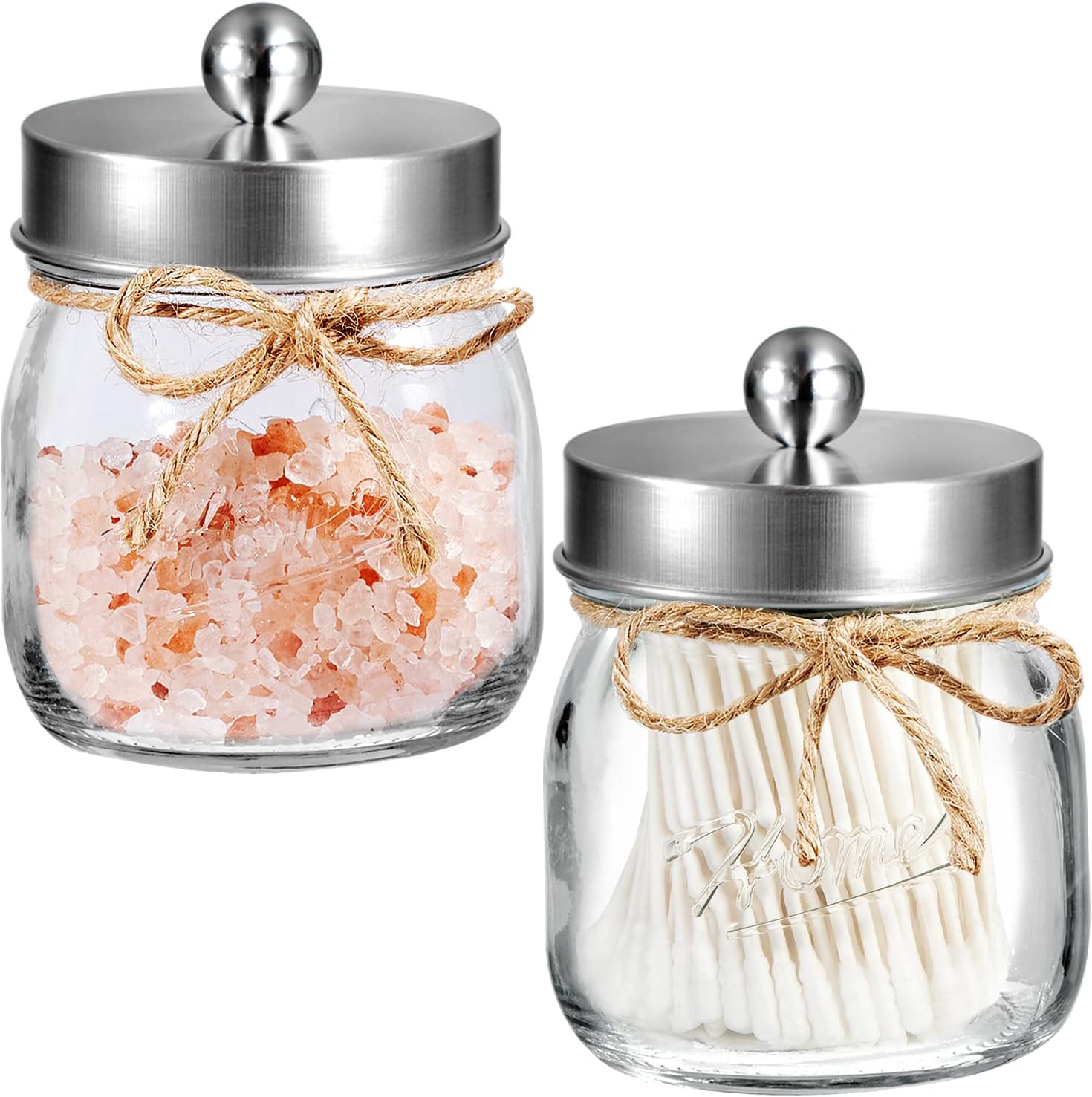 - ✔️Versatile Gift Idea: Ideal for a variety of occasions, this bathroom organizer and storage set is perfect for weddings, housewarming events, birthdays, Mother's Day, Thanksgiving Day, Christmas, New Year, bridal showers, and baby showers. It also makes an excellent gift for mothers, friends, sisters, co-workers, or anyone else, suitable for use throughout the year. The package includes: 2 pack glass mason jars with stainless steal lids. 2 Decorative Twines. 2 Cute Label Stickers.