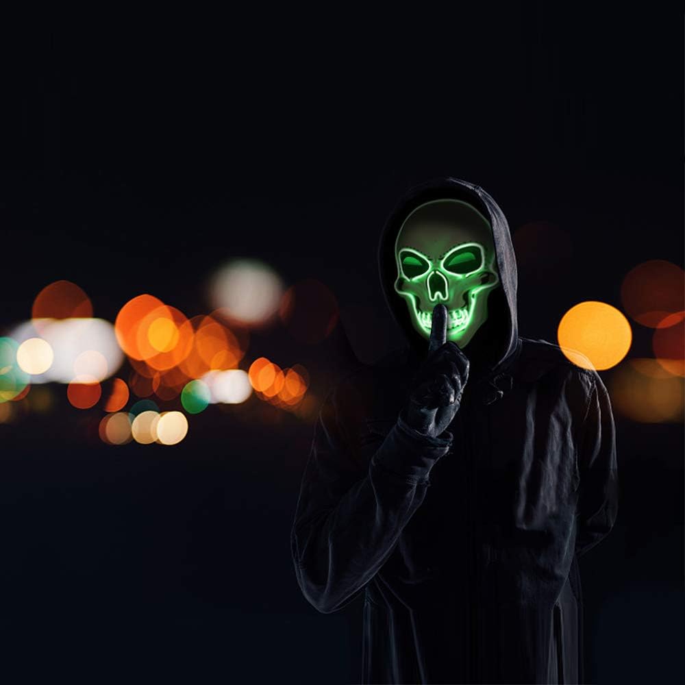 • 【Halloween Any Party Occasions】A scary face and pose will let you get more candy on halloween.EASY TO USE BY TURN ON LIGHT(YOU NEED EXTRA BUY BATTERY,IT NOT INCLUDE)The Mask Can be used on many occasions, such as Party, Rave Parties, Discos, Clubs, Halloween,Birthday, Festivals and other Events.