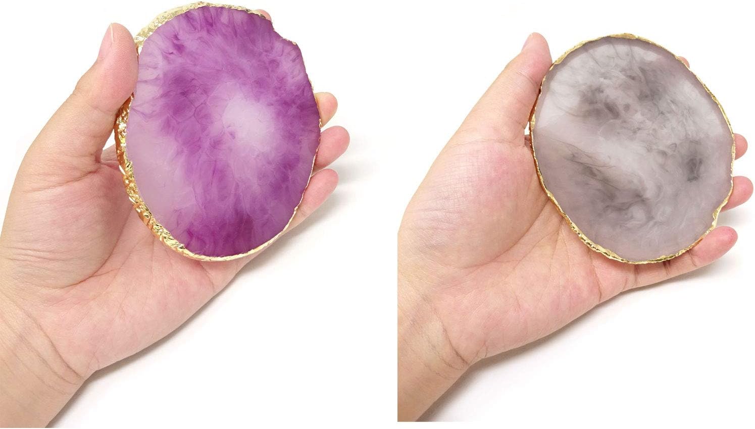 Honbay 2PCS Golden Edge Resin Nail Art Palettes Drawing Plates Manicure Display Tools for Women
