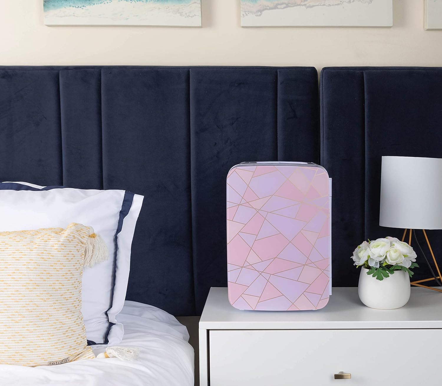 Cooluli 10L Mini Fridge for Bedroom - Car, Office Desk & Dorm Room 12v Portable Cooler Warmer Food, Drinks, Skincare, Beauty Makeup AC/DC Small Refrigerator with Glass Front, Fractal Pink