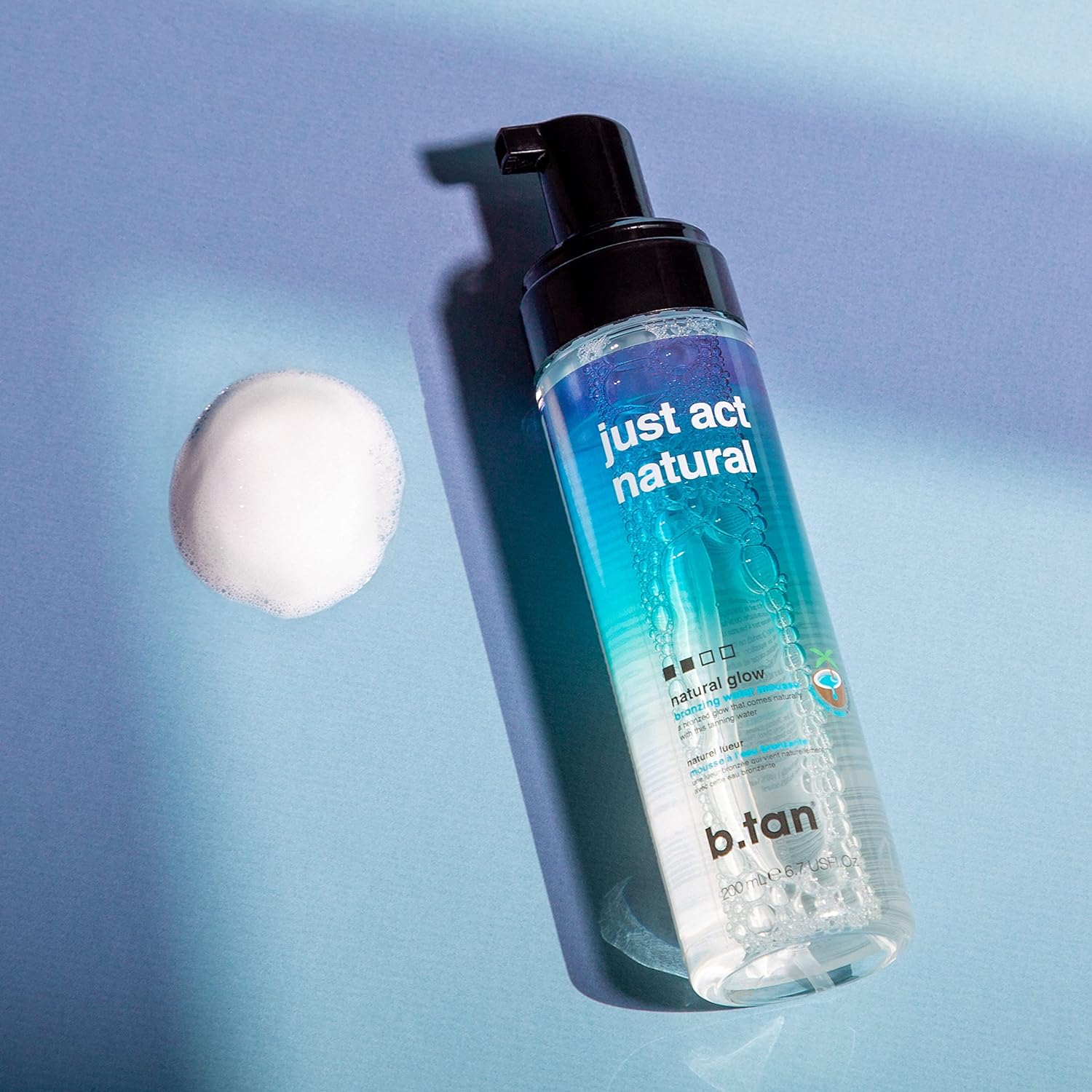b.tan Clear Self Tanner Bronzing Water Foam | Just Act Natural - Best 1 Hour Express Sunless Tanning Mousse, Dark, Transfer-Free, Enriched With Coconut Water & Vitamin E, Face & Body, 6.7 Fl oz