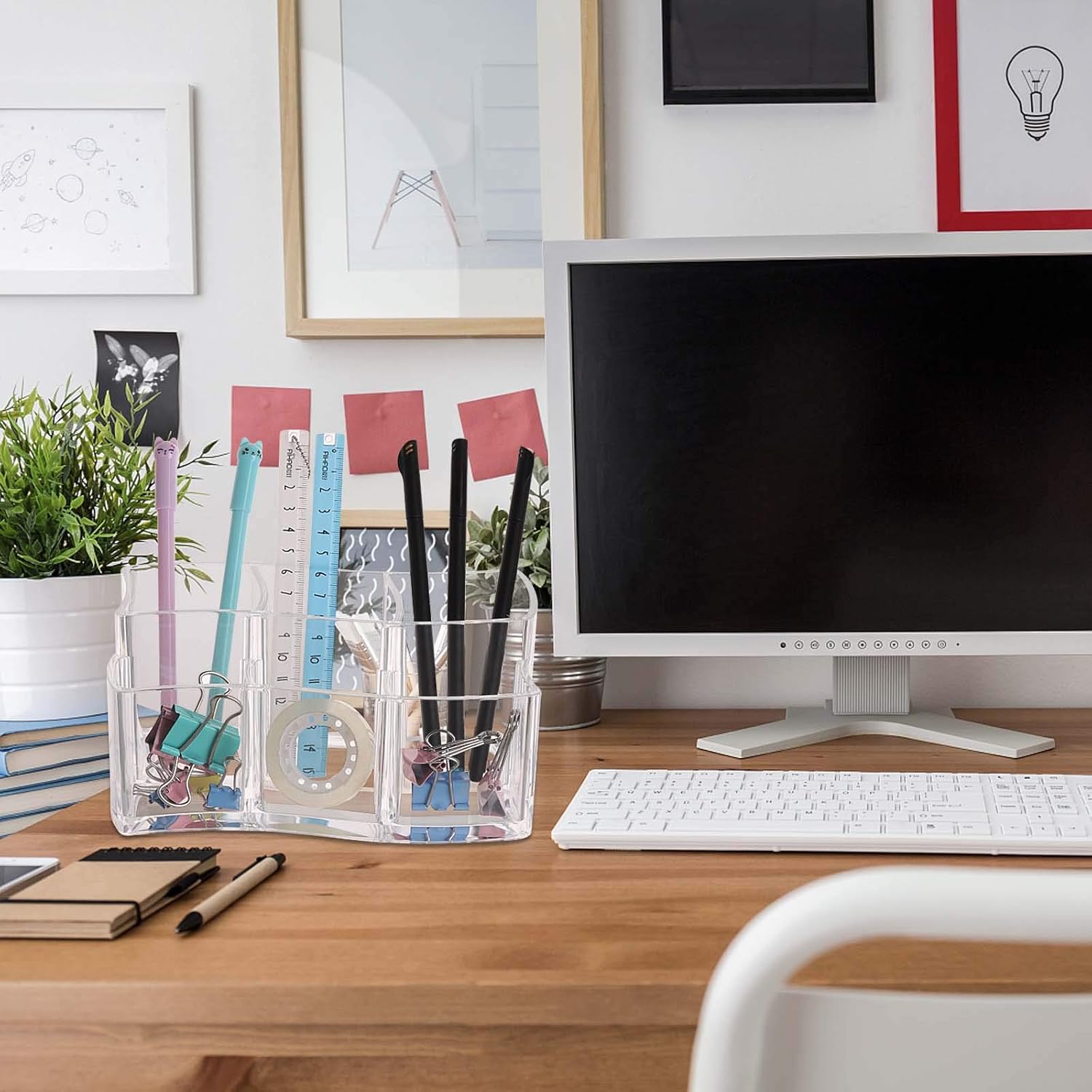 - Organizes many shapes and sizes of makeup brushes, eyebrow pencil, lip/eye liners, blushes, hair accessories, pens, jewelry and more