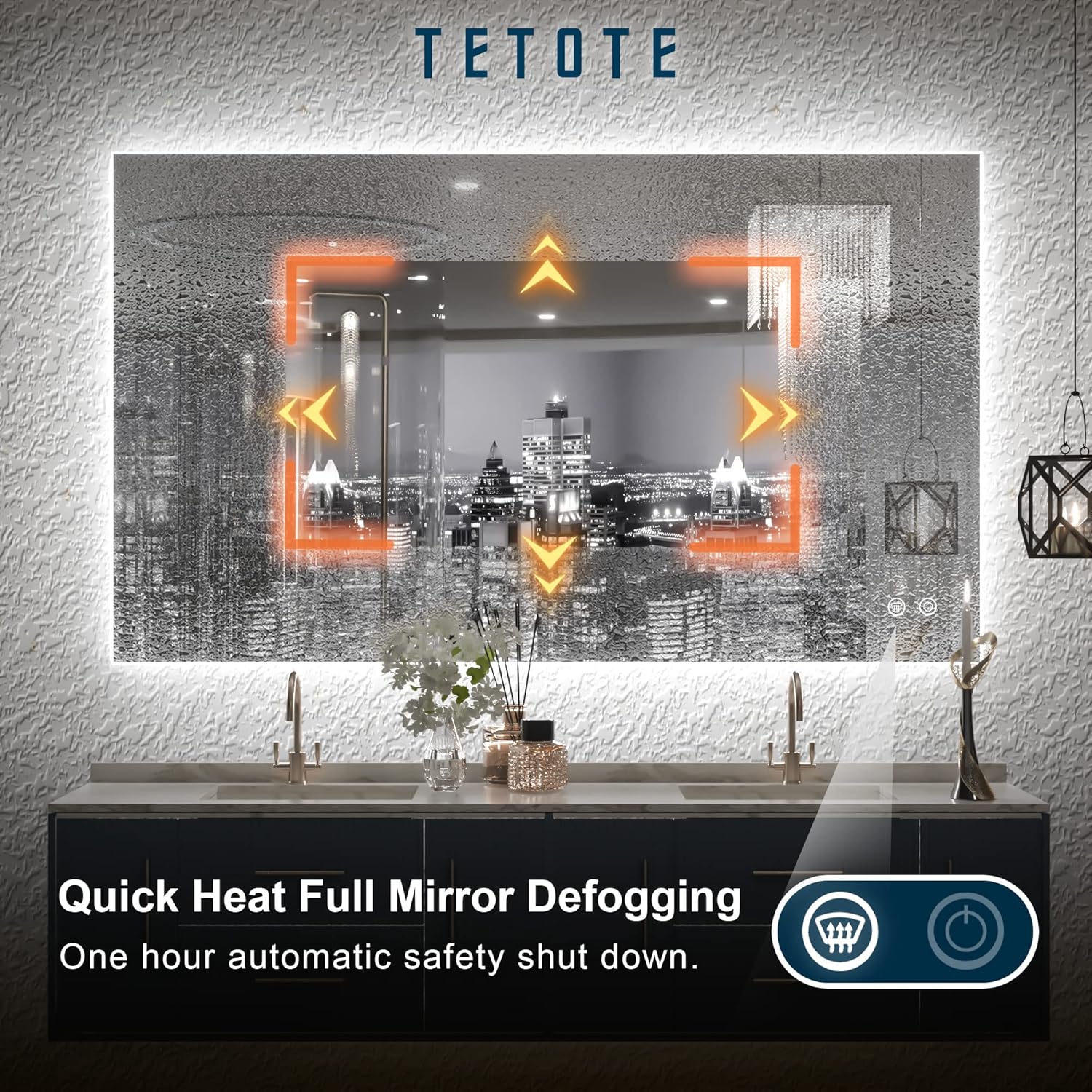 TETOTE 40 x 24 LED Backlit Vanity Mirror Bathroom,3Color White/Warm/Natural,Anti-Fog Lighted Mirror,Dimmable,Wall Mounted