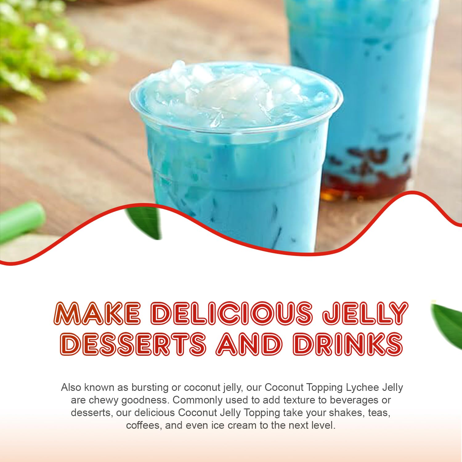 - Versatile Use: This boba tea jelly topping can be used in desserts like puddings, cakes, or tropical-themed pastries. It is also suitable for cocktails or mocktails, adding a unique texture and flavor to beverages and allowing chefs to experiment by using it as a base for creating innovative recipes