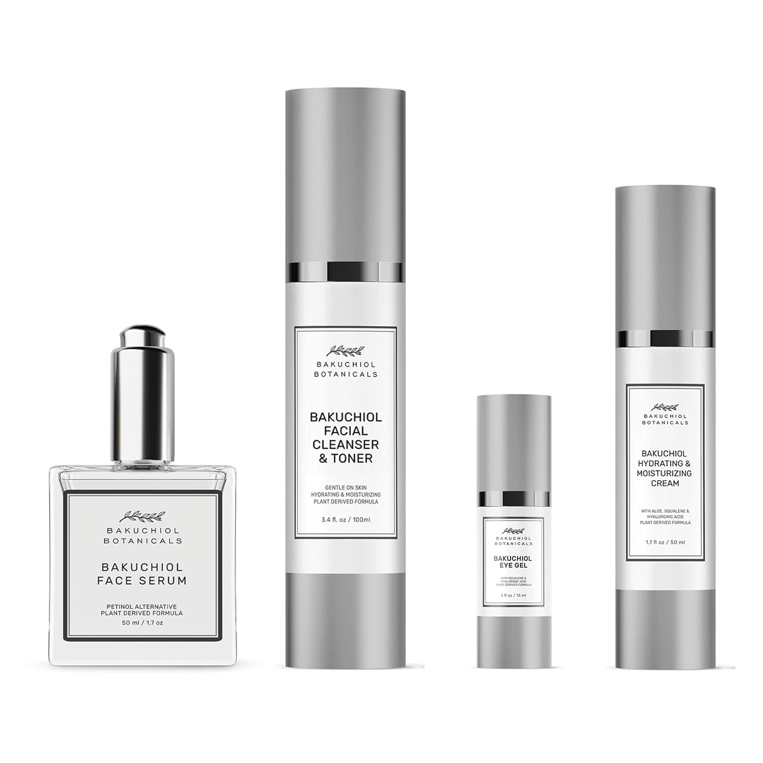 Bakuchol Botanicals Gift Set with Travel Case, Includes Face Serum, Toner & Cleanser All-in-One, Eye Cream, Moisturizer