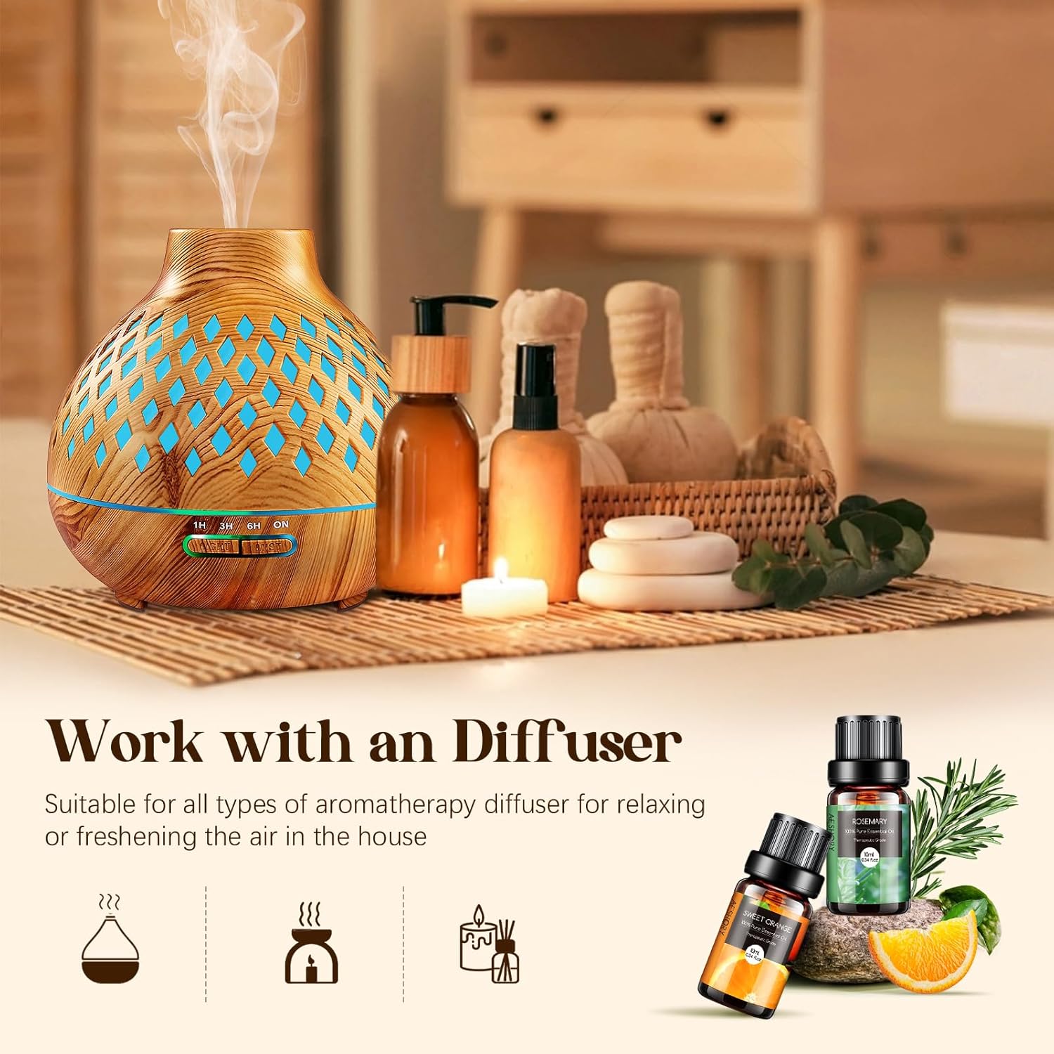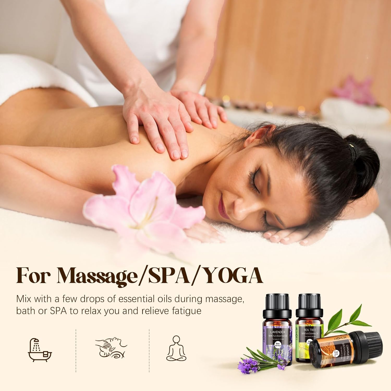 - 🎁Multi-Use: Our essential oils always adopt rigorous quality control standards. Simply add a few drops to any aromatherapy diffuser and fill your entire room with that aroma. And suitable for humidifier, aromatherapy, steam inhalations, hair or skin care, massage, bath, saunas, air freshening, home fragrance (bedroom, living room, bathroom, study room), office (workstation, conference room), yoga room and spa, etc.