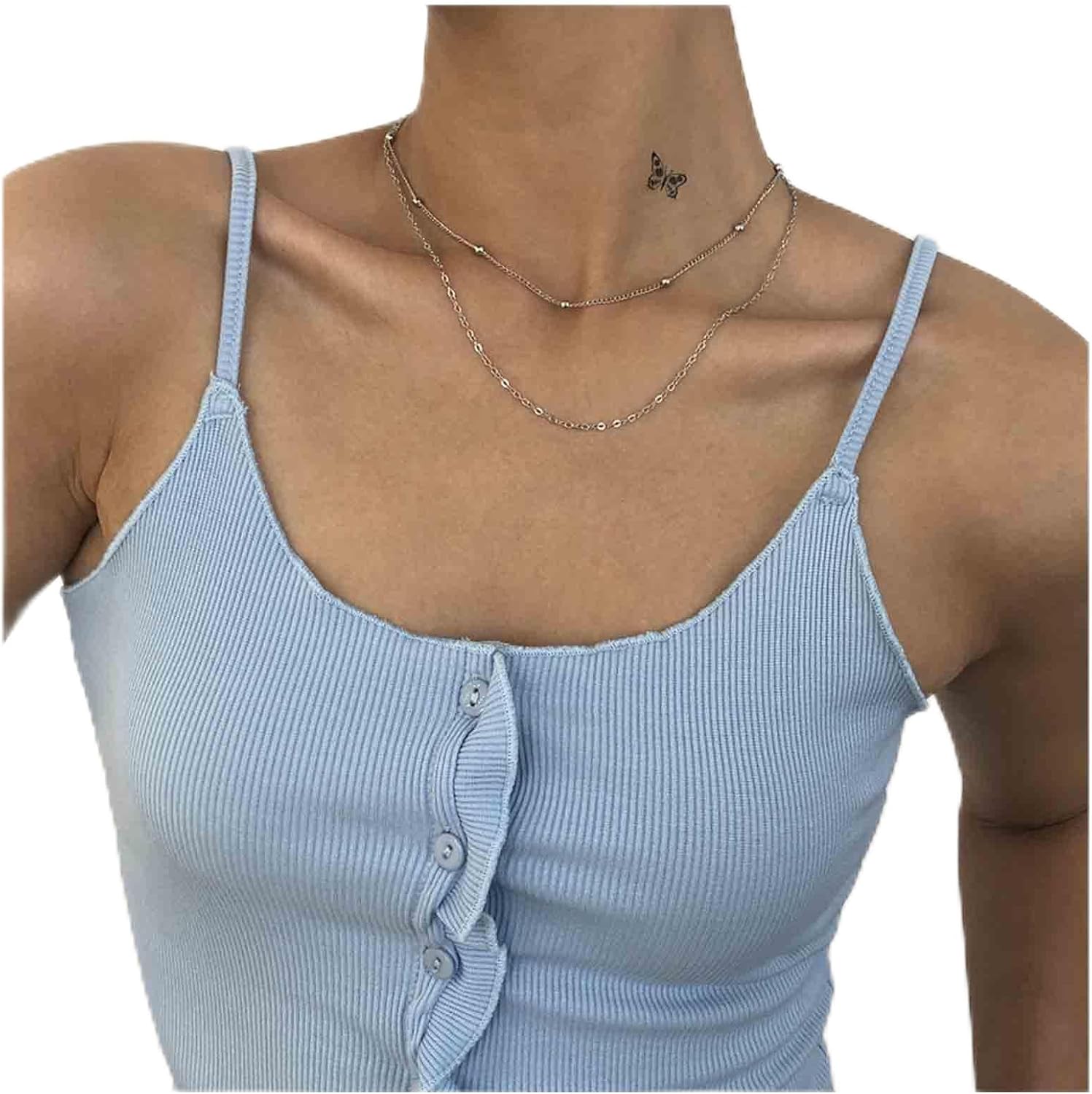 - Double Layered Satellite Chain Necklace suit for daily wear or party wedding prom nightclub or any special occasions.