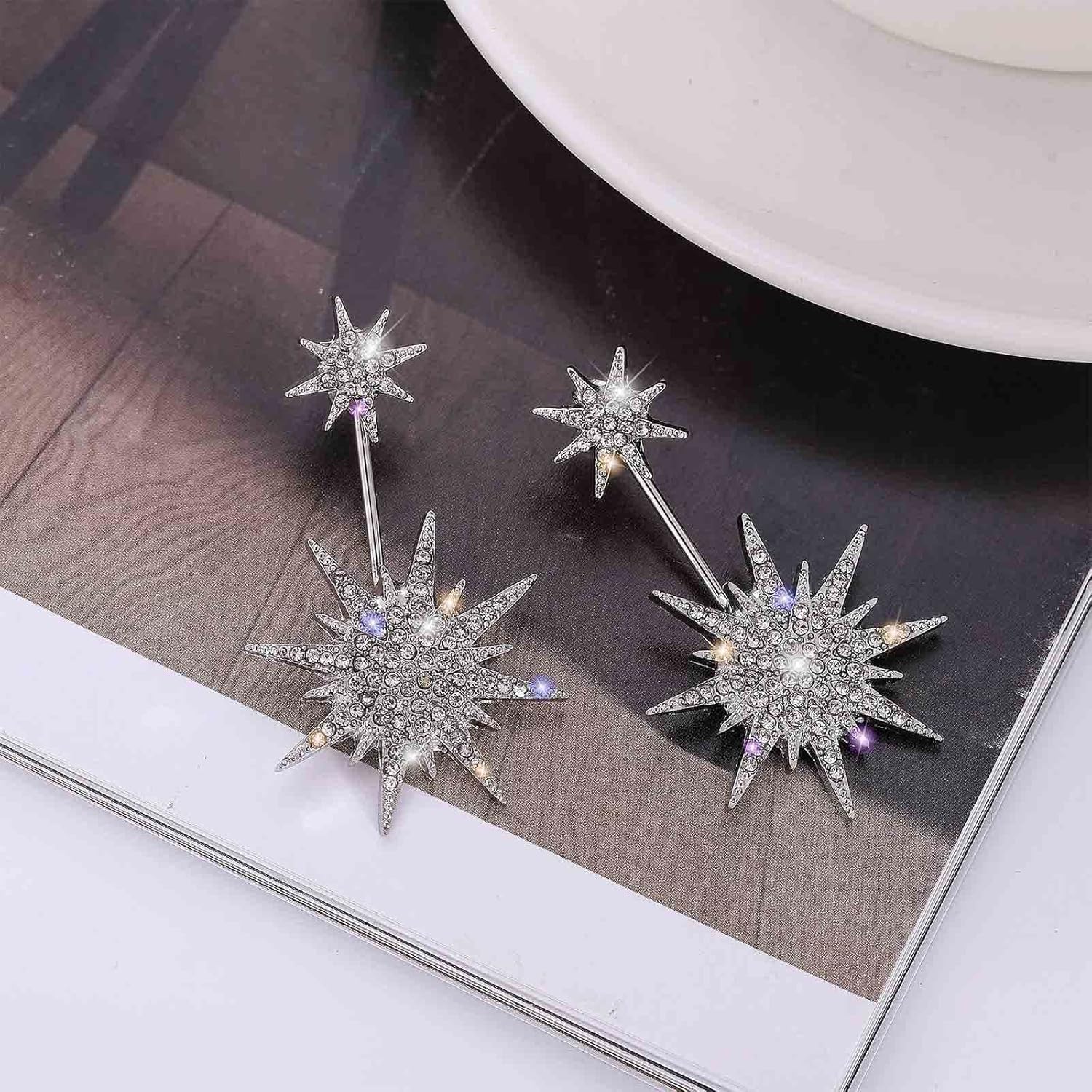 - Silver asterisk earrings suit for daily wear or party wedding prom nightclub or any special occasions.