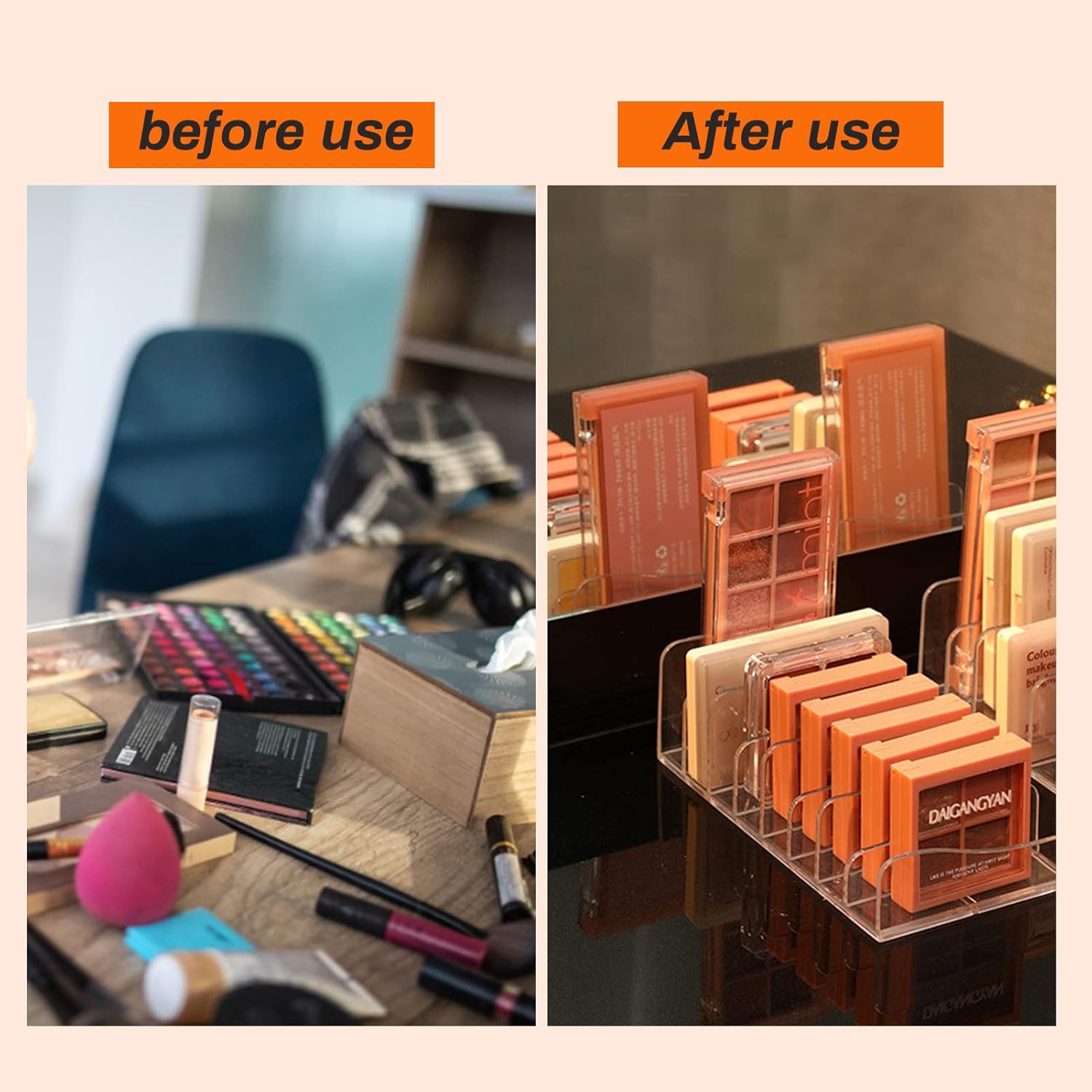 - ★MULTI-SCENE USE: The simple and stylish shape of the compact makeup palette organizer is suitable to place in your drawer, bookshelf, countertop, bathroom, powder room, vanity, dressing room or anywhere you need it.