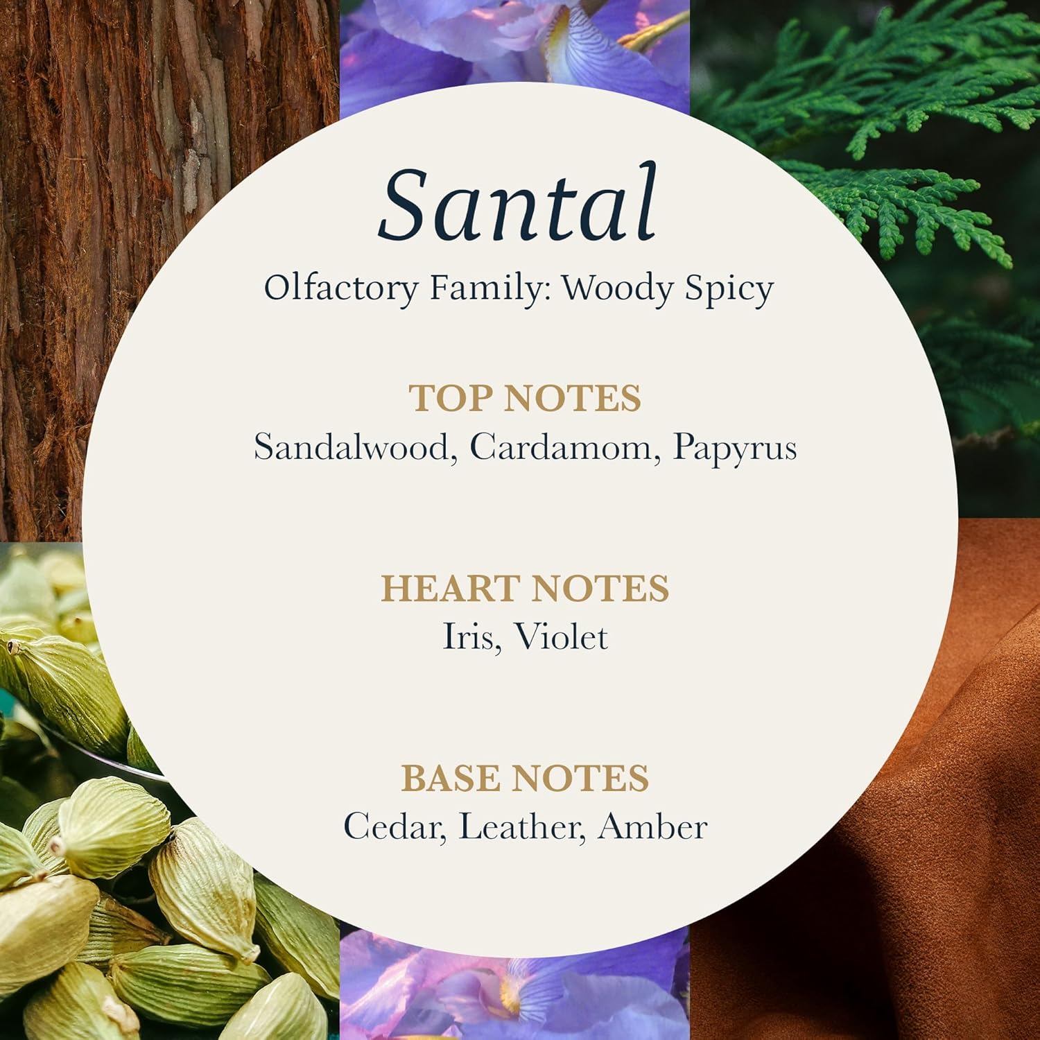- Luxury scent experience: desert wind, wood and leather. smoke rises from your self-made bonfire. you have found a treasure and you want to keep it a secret for a while, just to enjoy it yourself; but then you think it's so good it needs to be shared. this is santal, a difficult fragrance to keep away from the world. he is direct, strong, deep and honest.