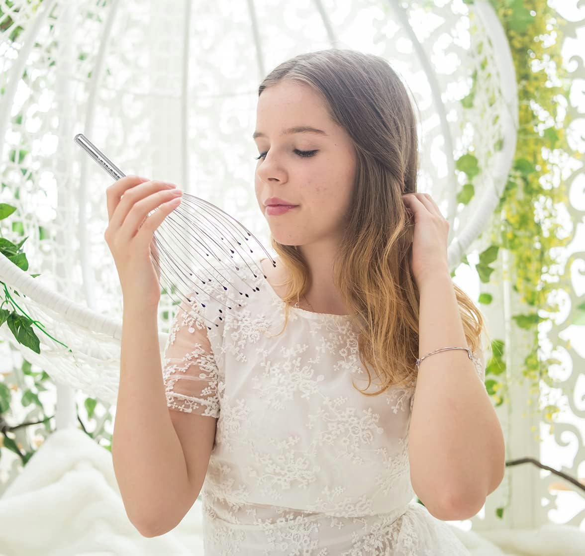 USAGA 36 Fingers Head Massager Scalp Massager Head Scratcher for Scalp Body Relaxing (Silver)