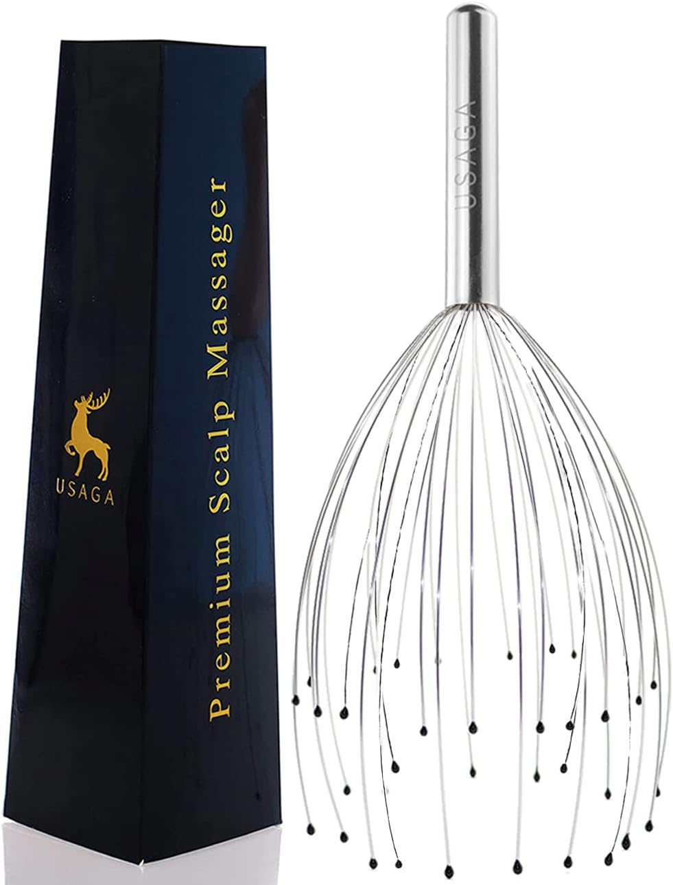 - [Updated Head Scratcher] - Patented US00D991474S. USAGA updated 36 finger head scratcher is an idea tool for head body stress relief and relax. A great gift for your sweetheart, family and friends.