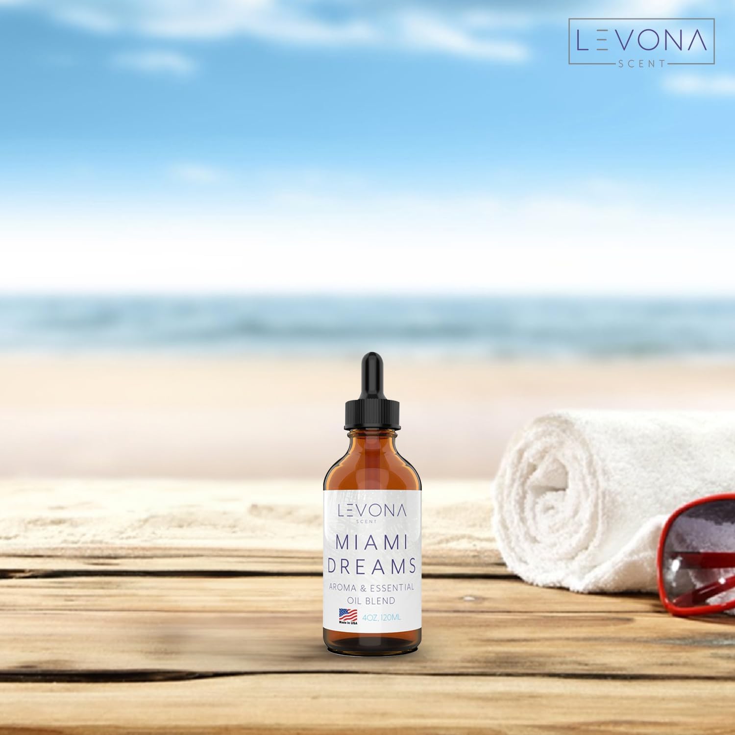 Levona Scent Essential Oils for Diffusers for Home: Miami Dreams Hotel & Home Luxury Scents Fragrance Oil - Aroma Oil with Notes of Bergamot Oil & Pine Essential Oil -120 Ml Scented Oils for Diffuser