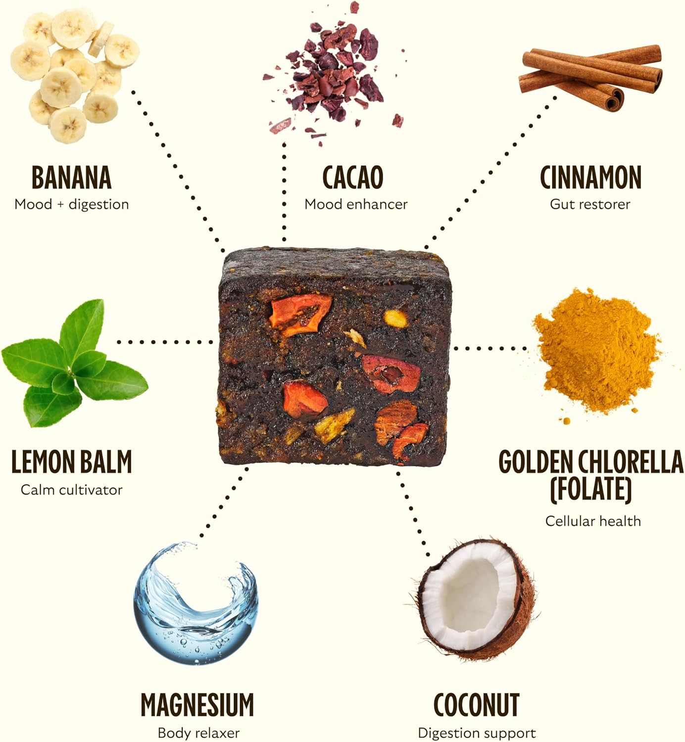 - Body Health: Each plant based bite contains over 15 whole food sourced vitamins, minerals, probiotics, and fiber to support gut health, energy, and beauty.