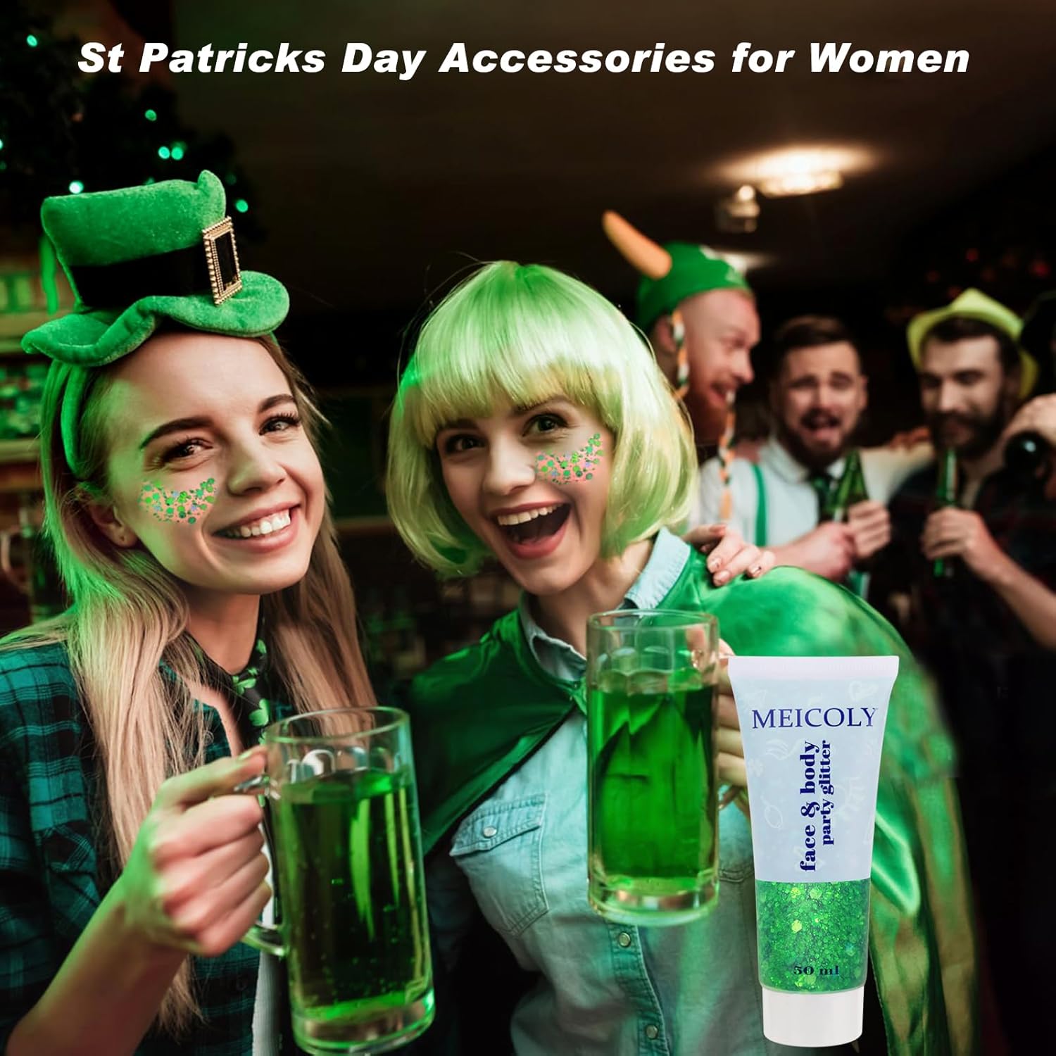 - Easy To Clean ---- When put on, it stays throughout the whole time but washes off easily with just soap and water.Suitable for St Patricks Day,glitter party,Mardi Gras Carnival,Music Festival Rave Accessories,Sexy Singer Concerts,children party,rave festival,wedding receptions,hen do fun,celebrations like the school color party,Halloween,Christmas,bar,nightclub,night party, performance.