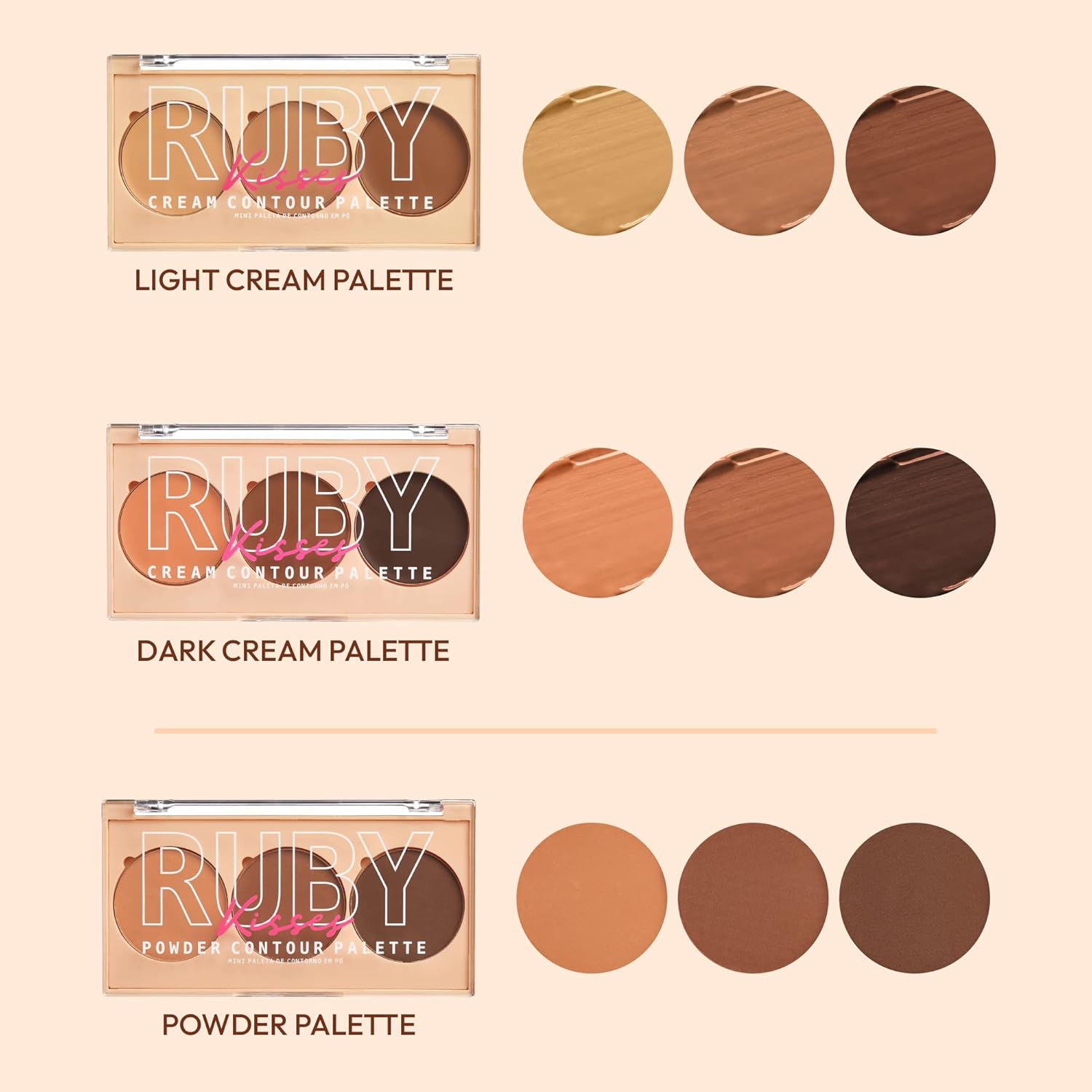 Ruby Kisses Contour Palette 3-in-1 Contour, Conceal, Highlight All-In-One Mini Palette, Long-Lasting, Easy to Blend Cream Contour Palette for Oily and Dry Skin (Tan To Dark)