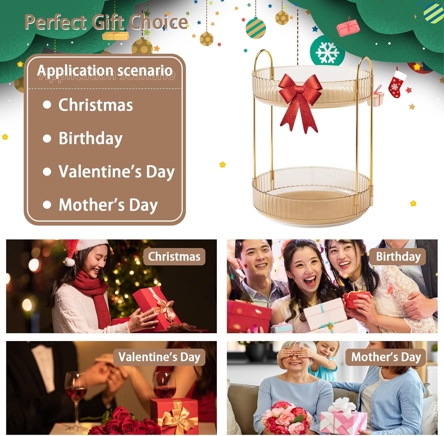 Rotating Makeup Organizer for Vanity, High-Capacity Skincare Clear Make Up Storage Perfume Organizers Cosmetic Dresser Organizer Countertop 360 Spinning (Gold, 2 Tier)