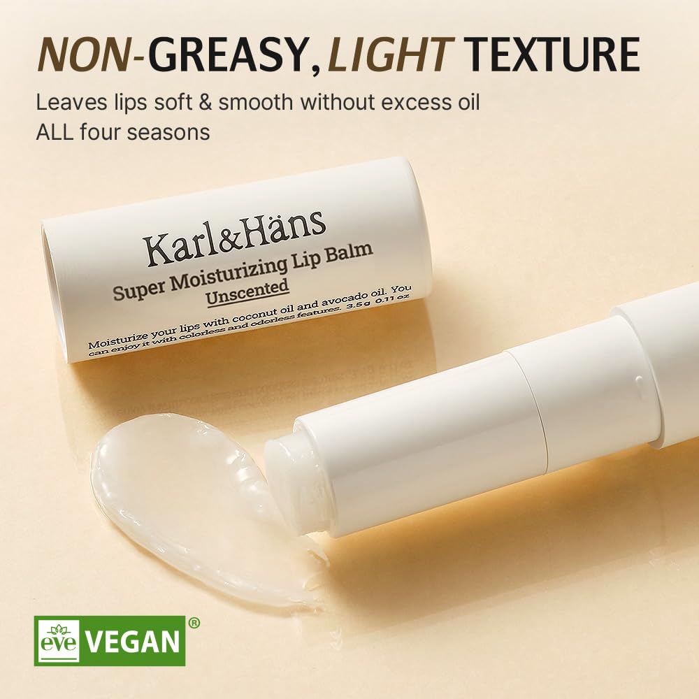 Karl&Hans Super Moisturizing Lip Balm - Unscented with Coconut & Avocado Oil for Lip Repair and Care, Soothes and Hydrates Dry Lips with Natural and Nourishing Formula - 1 Count