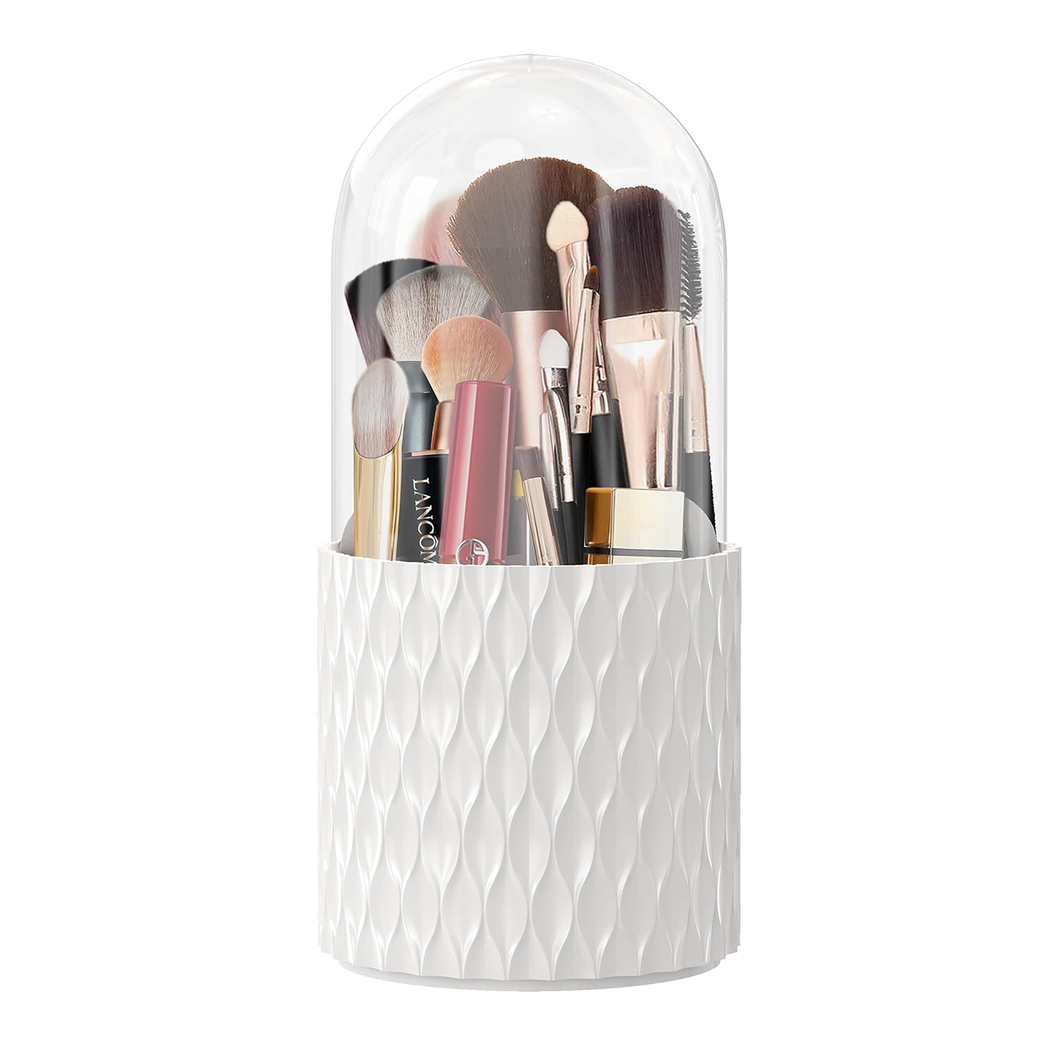 - [Makeup Brushes within Reach] - Keep your brushes within reach and on display with our clear waterproof and dustproof cover. Perfectly store your makeup brushes on your desktop, bathroom mirror, or vanity, and use them just need to rotate whenever you need them.