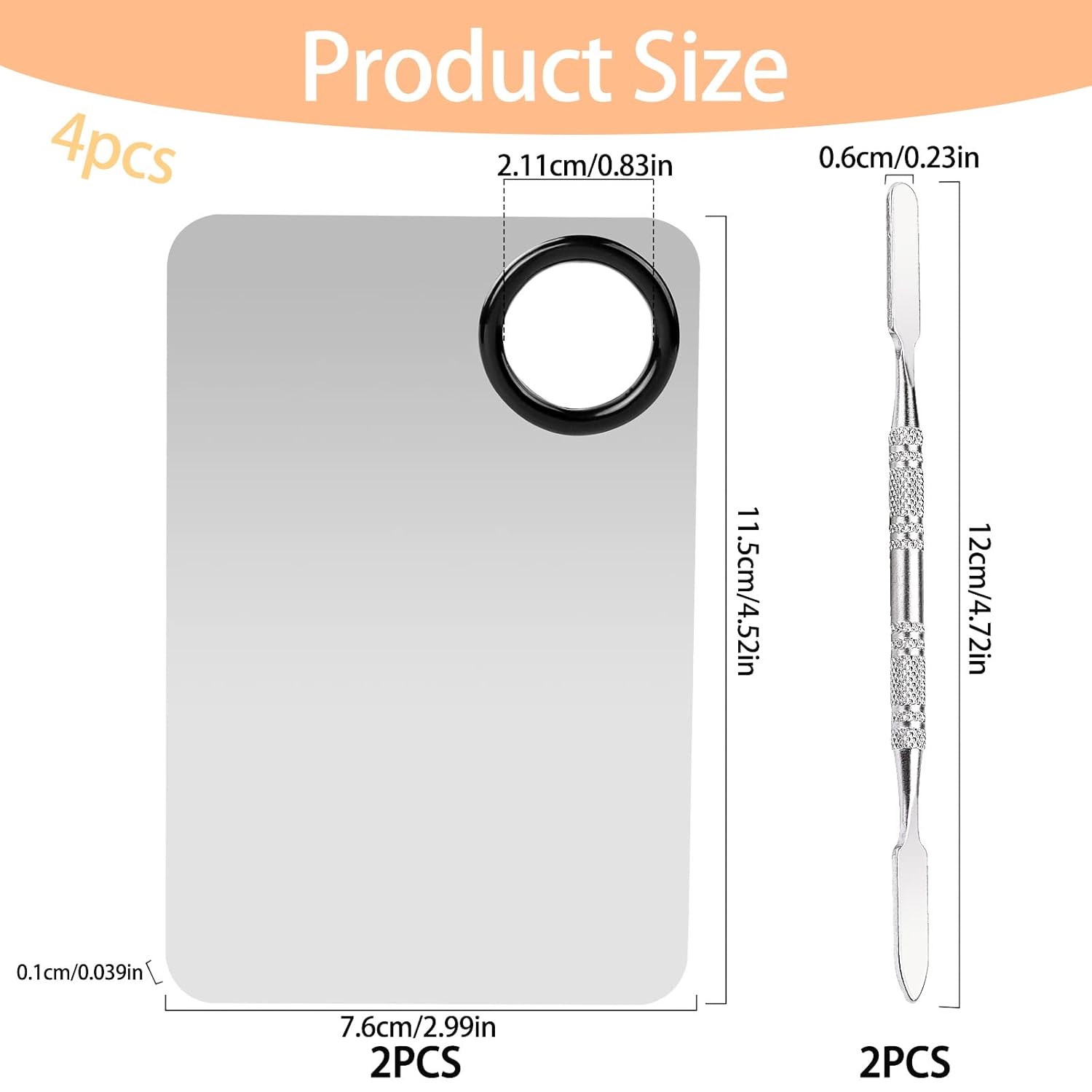 - 【Reasonable Size】: Our makeup mixing palette is 11.5 x 7.6 cm/4.52 x 2.99 inch and the makeup spatula is 12 x 0.6 cm/4.72 x 0.23 inch, small and portable, perfect size to fit your hands