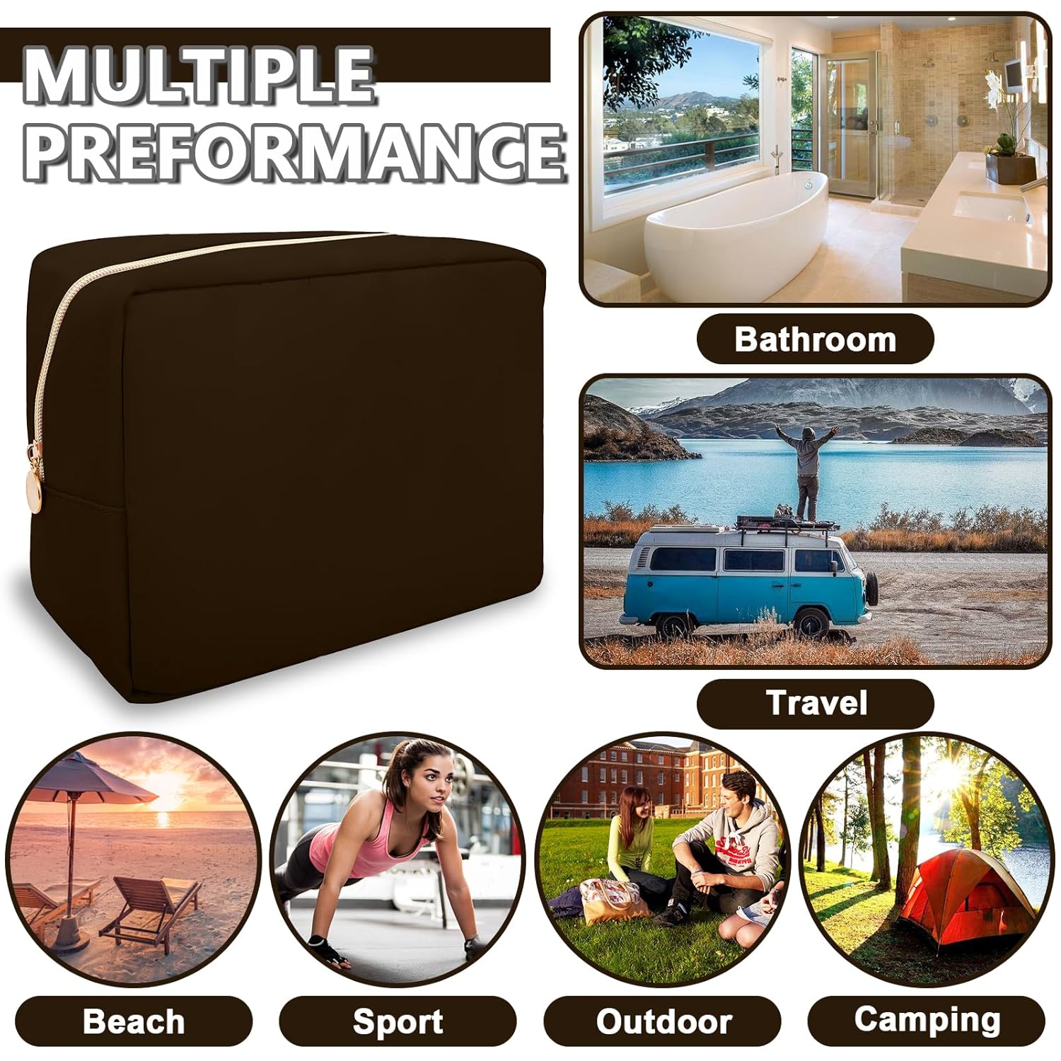 - 【Multi-purpose】The preppy makeup bag makes it easy to pack and carry cosmetics, jewelry, sanitary napkins, brushes, small electronic accessories, toiletries, medications, tools or other travel essentials. It's a great bag for travel, parties, camping, beach, gym, etc.