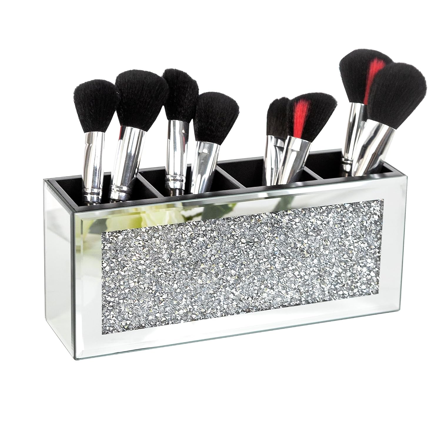 - MATERIAL - Makeup brush holder is made of HD mirror glass and MDF, inlaid with stunning bling crystal crushed diamonds on the front, suitable for any decoration.