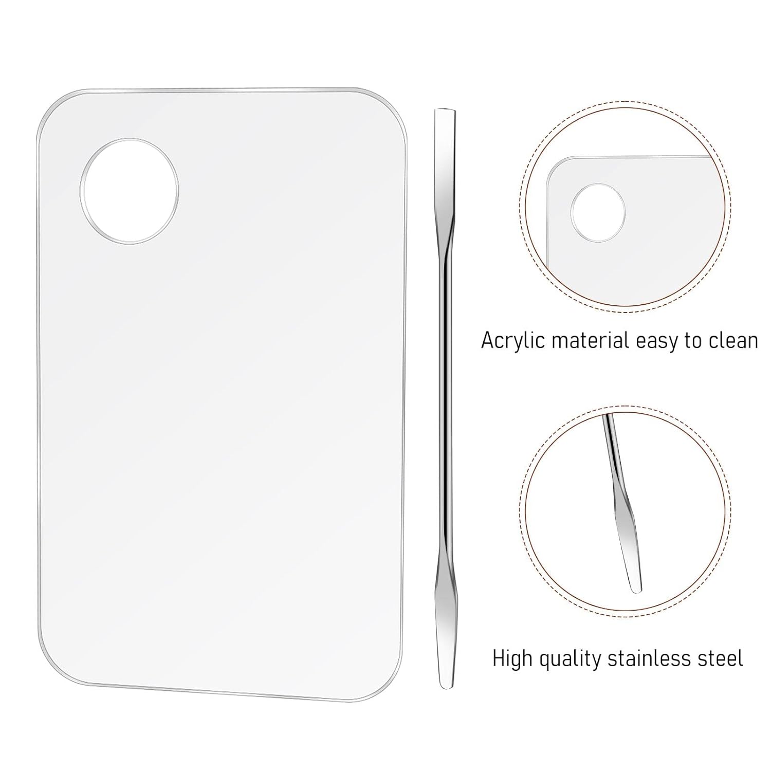 - 【Reliable Material】The makeup mixing tray is made of high-quality acrylic, has a smooth texture, and the color display is clear and beautiful, the makeup spatula is made of stainless steel, double-ended design, is durable, and is easy to clean.