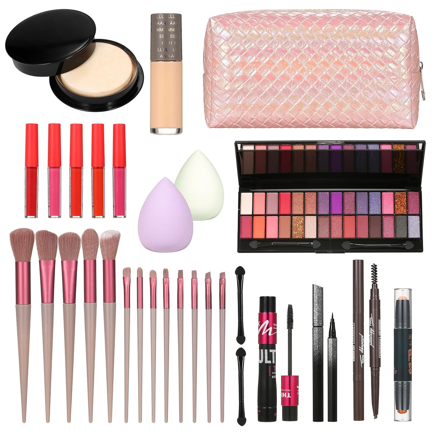All in One Makeup Kit Makeup Kit for Women Full Kit Multipurpose Makeup Kit-Makeup Brush Set,Eyeshadow Palette,Lip Gloss Set, Makeup Bag,Eyebrow Pencil,Eyeliner pencil,Mascara,Contour Bar,Liquid foundation,concealer and Face Makeup