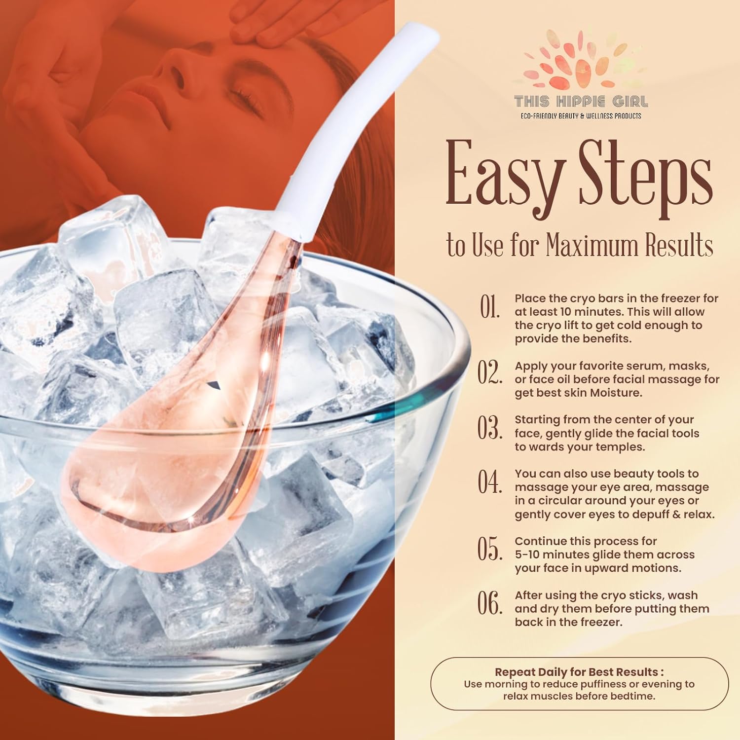 - 🍃QUALITY MATERIALS: Made of rose gold-plated stainless steel wands. Will not break like the glass counterparts. Prolonged cooling therapy with refrigeration or freezing. Comes with a storage case to store in the refrigerator or in cabinet.