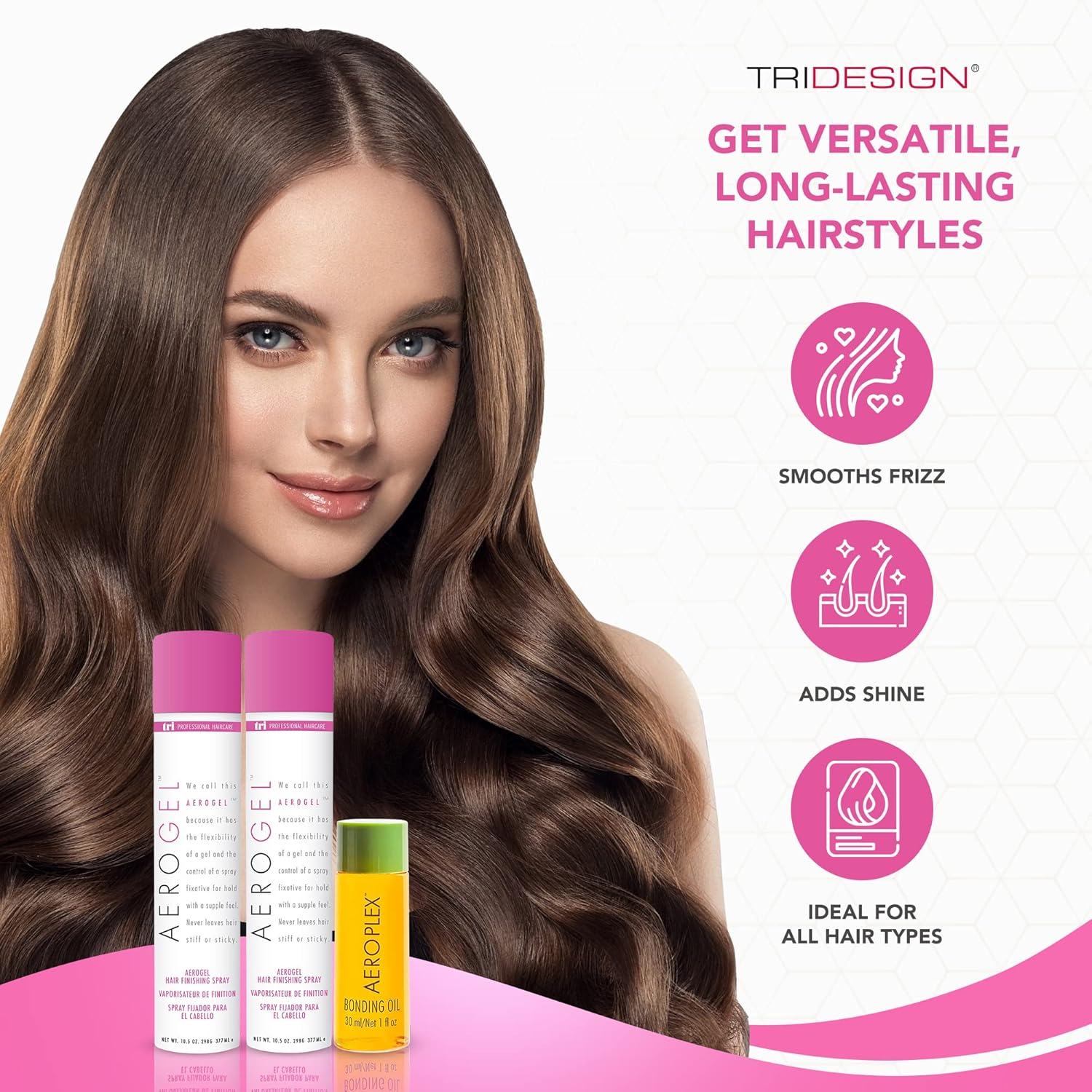 TRI Design Aerogel Hairspray & Aeroplex Bonding Oil Bundle - Hair Finishing Spray for Volumizing, Control, Repair & Prevent Breakage for Dry, Damaged & Frizzy Hair - Pack of 3 (10.5 Oz & 1 Oz)