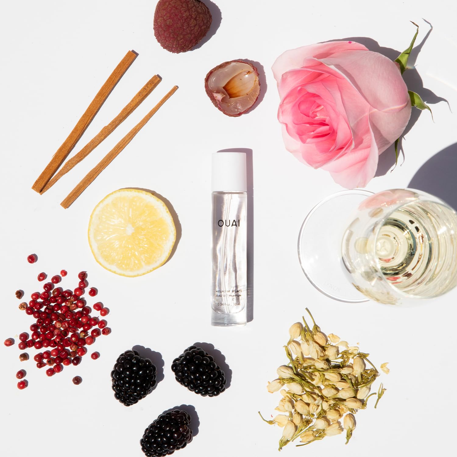 OUAI Melrose Place Eau de Parfum Travel Size - Elegant Womens Perfume for Everyday Wear - Fresh Floral Scent has Notes of Champagne, Bergamot & Rose with Delicate Hints of Cedarwood & Lychee (.34 Oz)