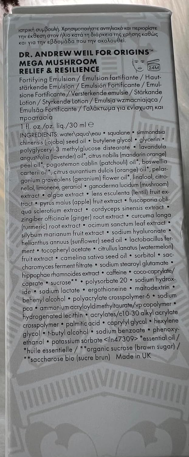 - INCLUDES: 1 fl oz / 30 mL Travel Size Checks And Balances Frothy Face Wash, .5 fl oz / 15 mL Travel Size Ginzing Into The Glow Brightening Serum, and 1 fl oz / 30 mL Travel Size Dr. Andrew Weil For Origins Mega Mushroom Relief & Resilience Fortifying Emulsion.