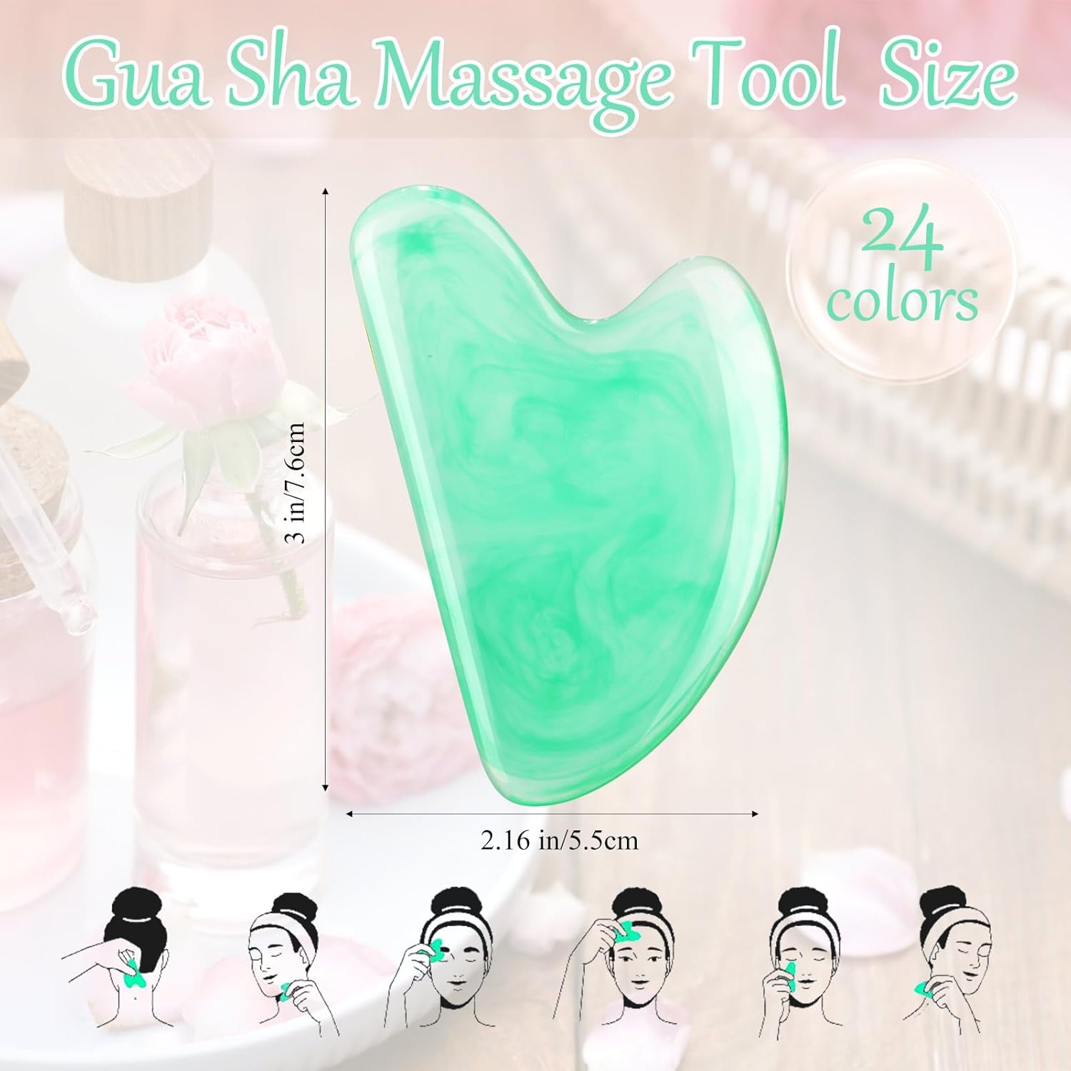- Value 24 Colors: our value combination contains 24 colors of heart shaped gua sha facial tools, including jade pattern series, pearl series, gold foil series and so on different color combinations, the number is enough to meet your needs, different colors are easy to distinguish; Plus the gift box is a great gift set that can be given to your mom, sister or friend