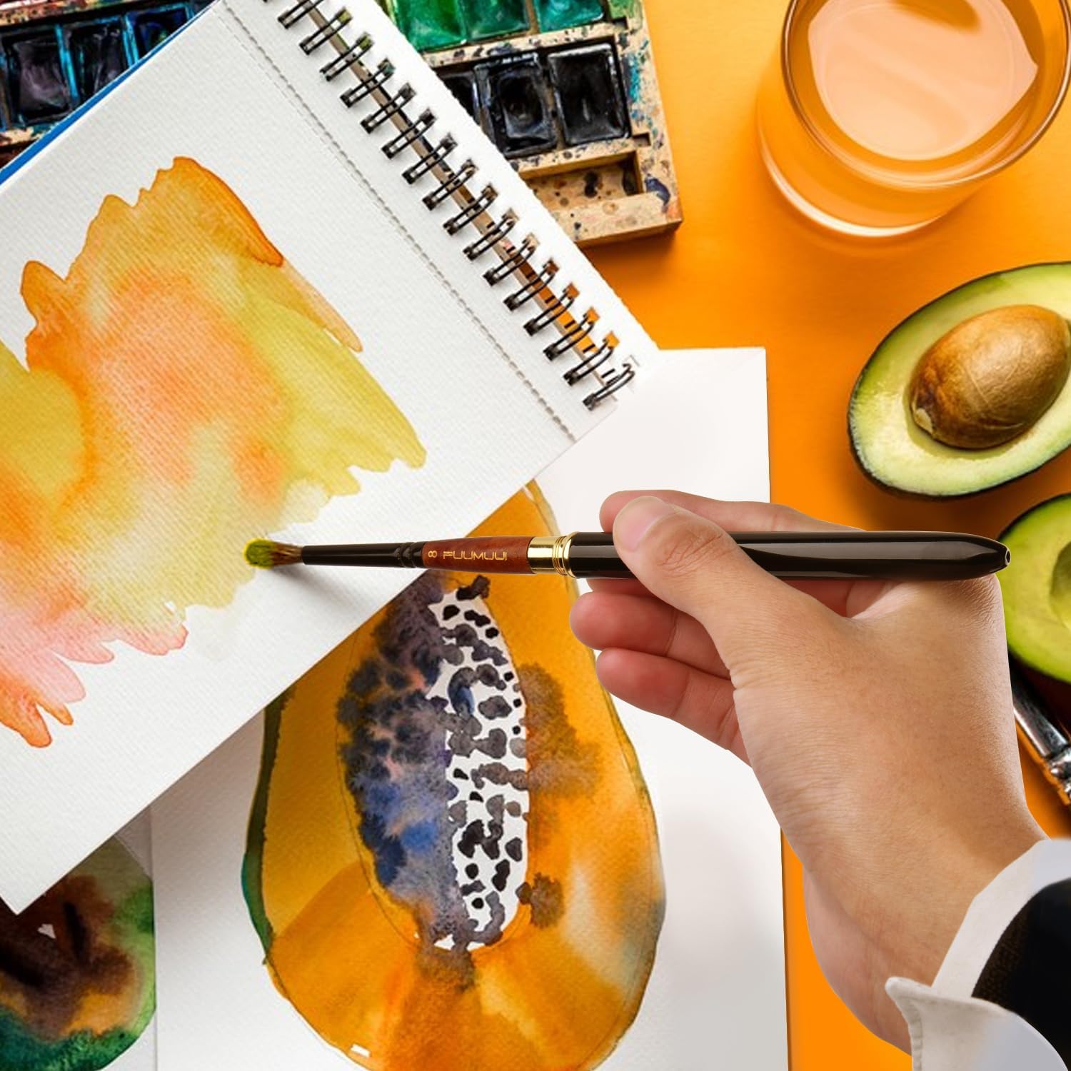 Fuumuui 4pcs Elegant Kolinsky Sable Watercolor Brushes - Travel Kit with Leather Pouch Perfect for Gouache Ink Painting