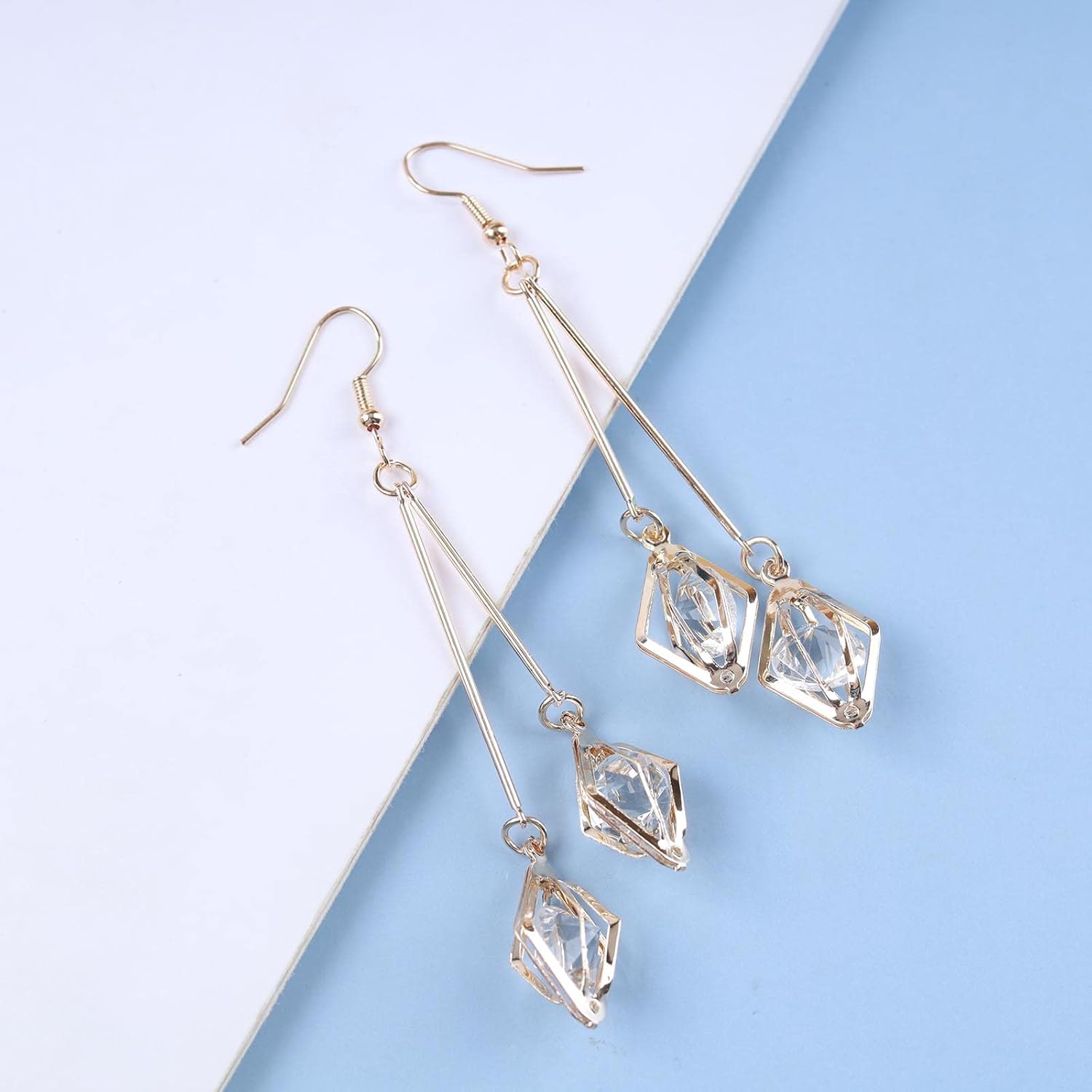 Vintage Crystal Dangle Earrings Long Bar Drop Earrings Cz Rhinestone Earrings Gold Long Wire Earrings Jewelry for Women