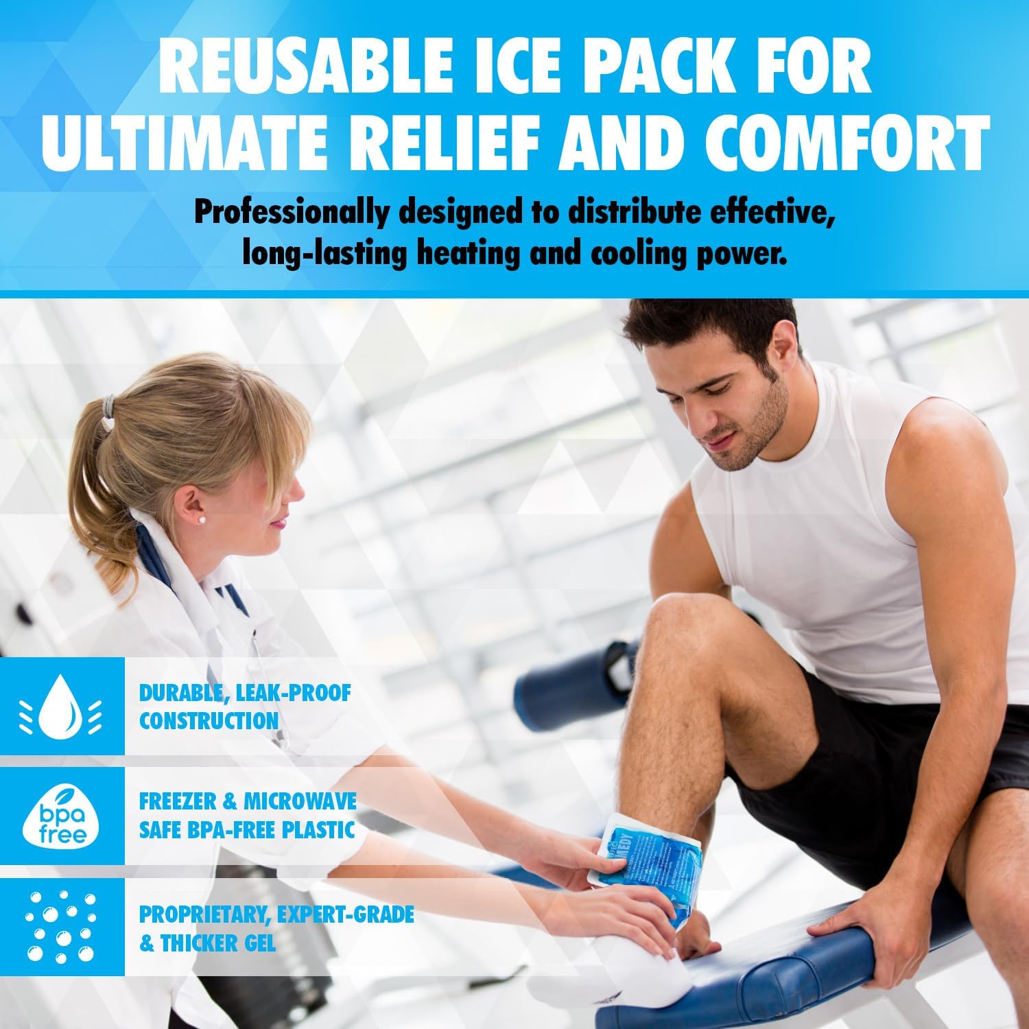 - RELIABLE PAIN RELIEF: Don't let pain disrupt your daily life - try our ice packs for injuries reusable gel! With a thicker composition & 50% more gel, our reusable gel ice packs ensure longer-lasting effectiveness and faster pain relief.