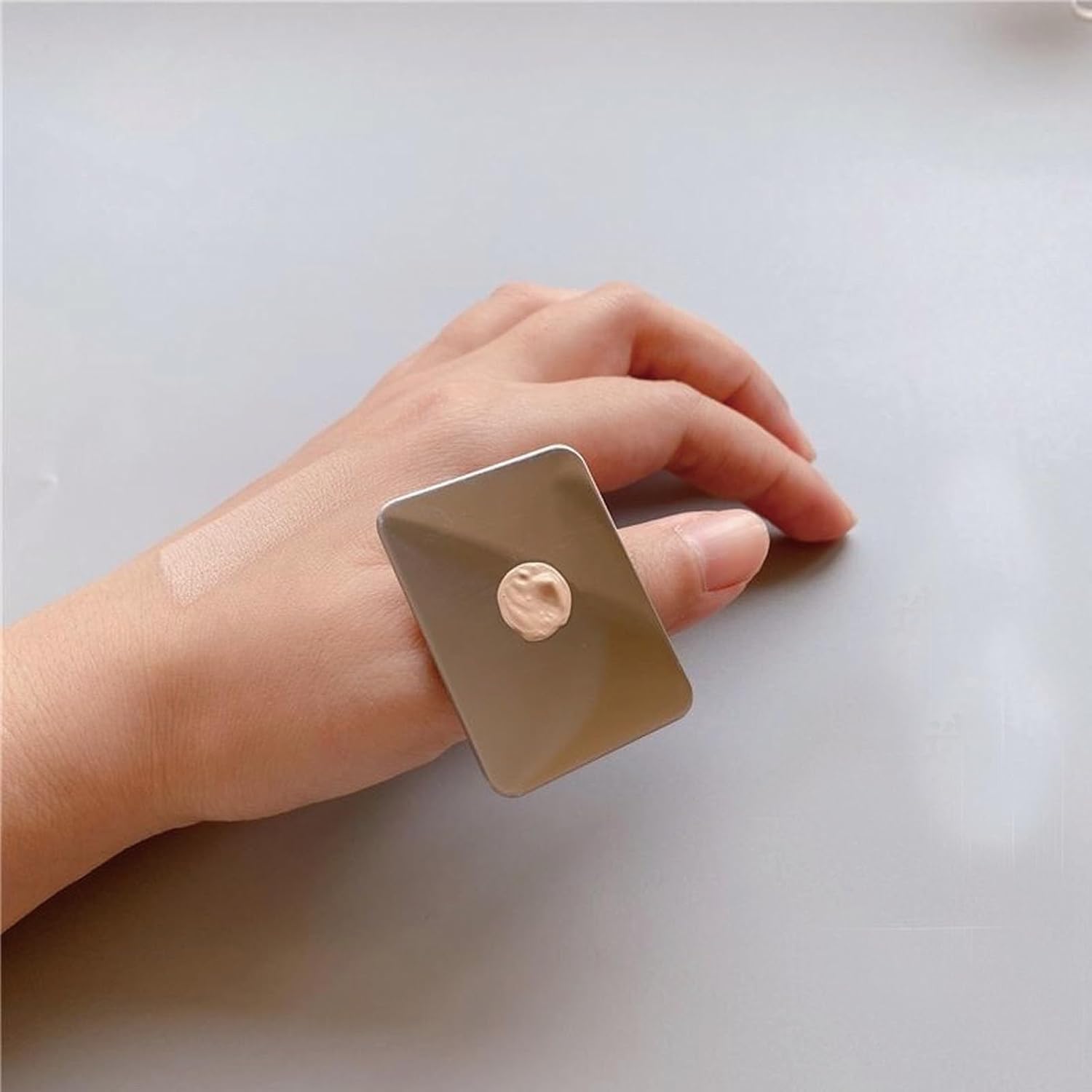 Makeup Spatula Set Stainless Steel, Make Up Tools Mini Mixing Tray with Finger Ring, Makeup Paint Palette, Pack of 2