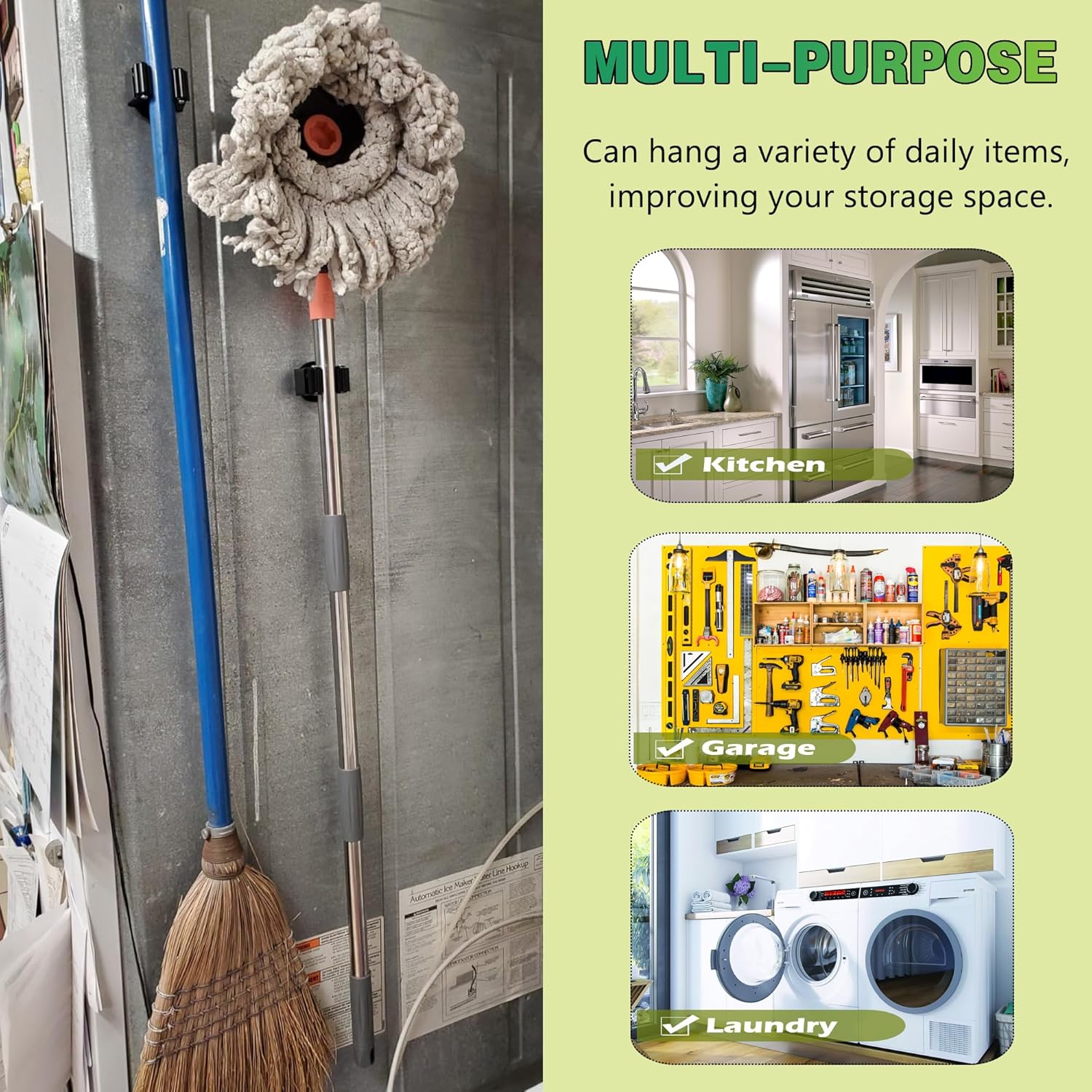 - [Pakage List]: 2 pcs Magnetic Mop Broom Holder. This hook is the perfect solution to reduce clutter, increase space, keep items in order, and quickly find what you need