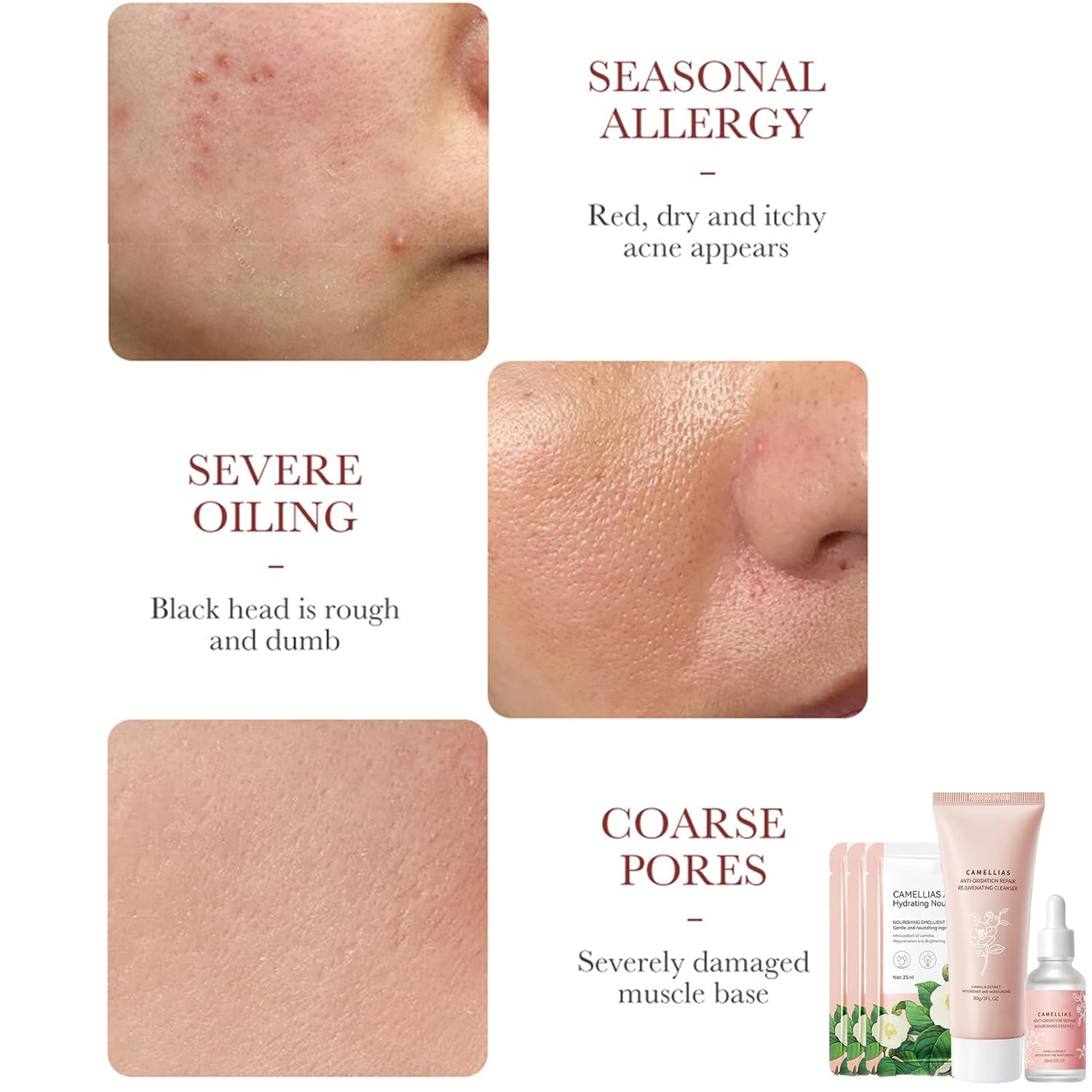 Camellia Extract Skin Care Sets, Skin Care Gift Set for Women Girls, Face Skin Care Routine Kit for Women, 5Pcs Skin Care Products Set with Cleanser,Mask, Face Serum