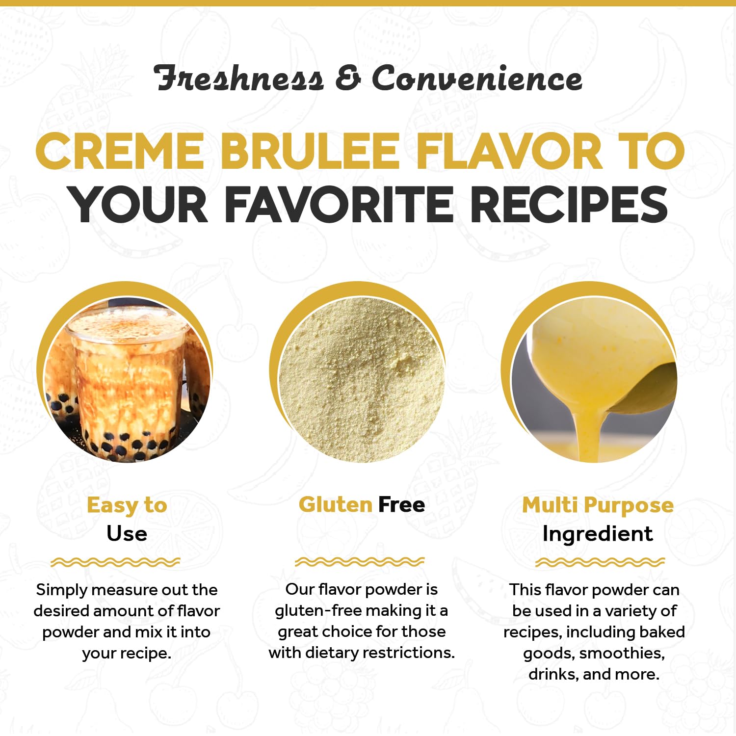 - ๐๐๐ฌ๐ฒ ๐ญ๐จ ๐ฎ๐ฌ๐: Simply measure out the desired amount of Creme Brulee flavor powder and mix it into your recipe. No need to chop, grind, or blend Creme Brulee, as this powder provides all the nutty flavor you need in a convenient form.