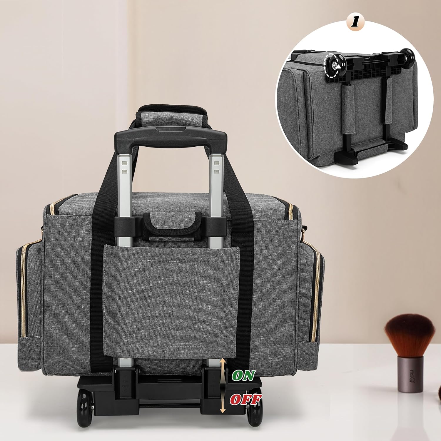 LUXJA Rolling Makeup Case with 3 Removable Pouches and 1 Makeup Brush Bag, Large Makeup Bag Cosmetic Bag with Detachable Dolly (Patented), Gray