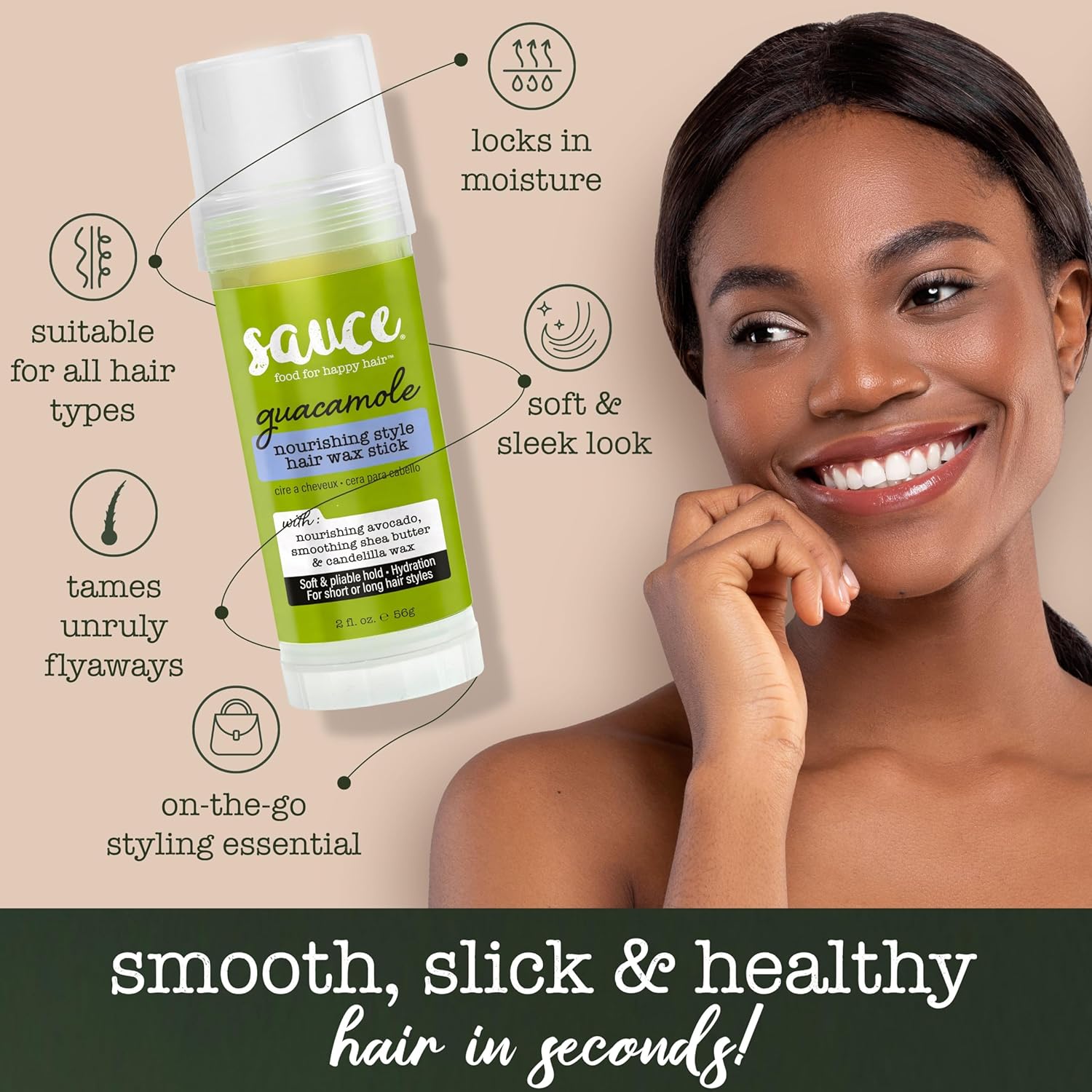 - Guac for Your Locks: At Sauce Beauty, we're inspired by how real ingredients can nourish not just your body, but also your hair; Our Guacamole Hair Wax Stick is formulated to help soften & restore moisture to your stressed-out, brittle hair for a healthy, sleek look